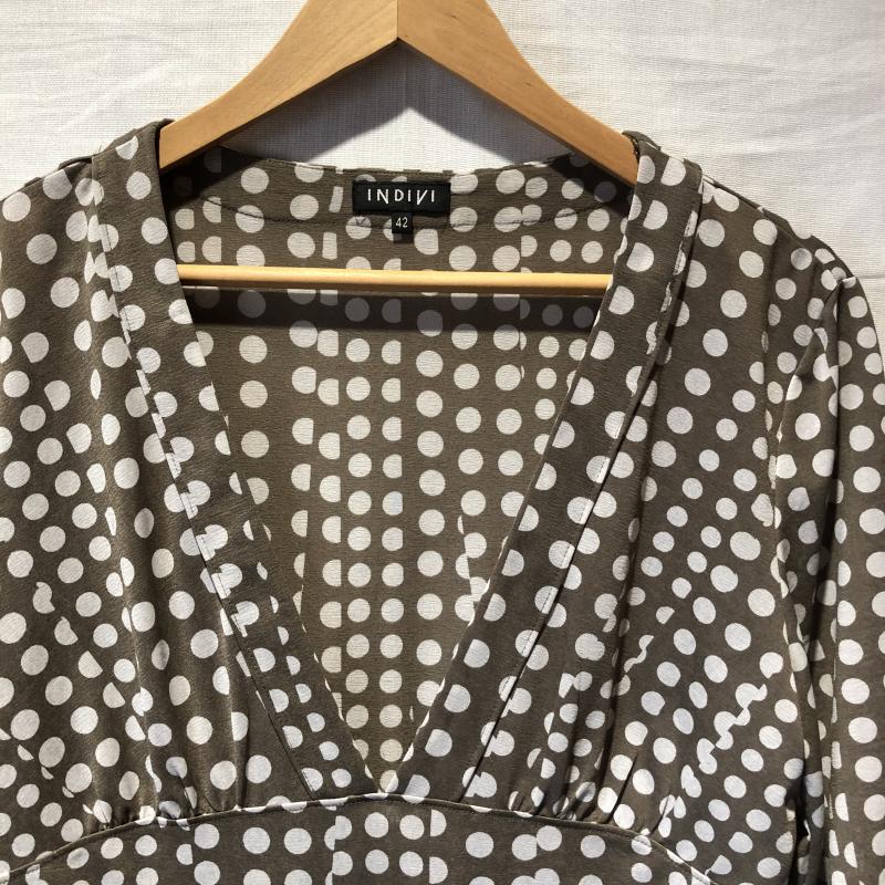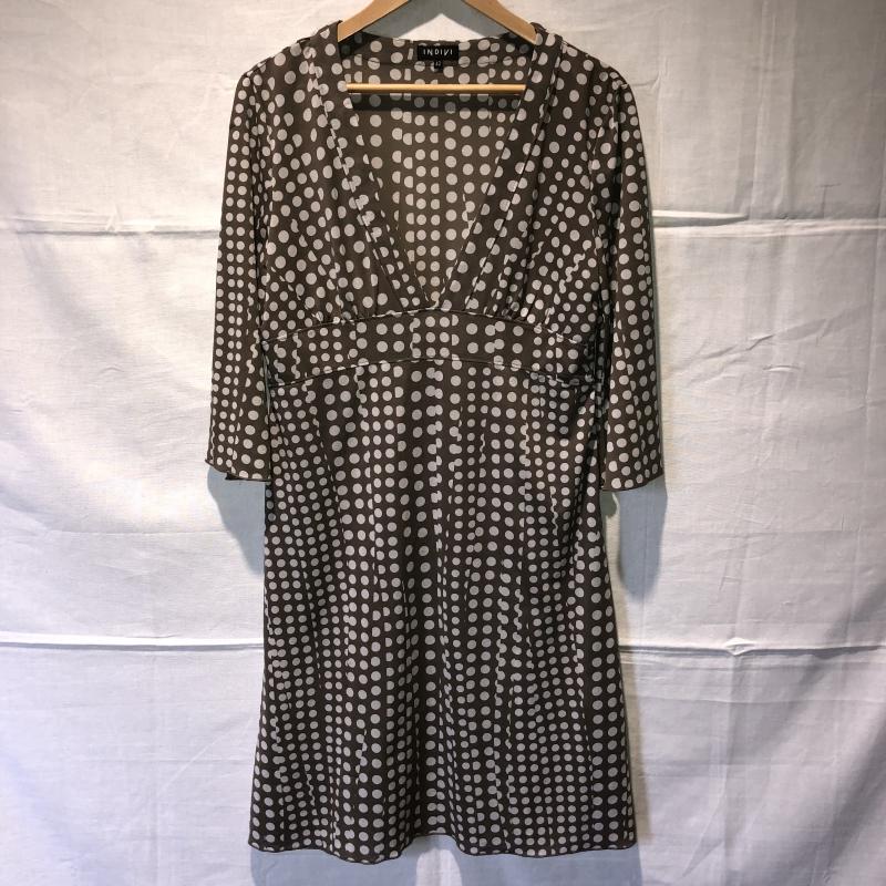 インディヴィ INDIVI ワンピース ミニスカート 42 ドット ベージュ / ベージュ / X 灰 / グレー / レディース USED 古着 中古 10011495