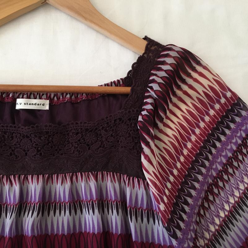 アーウ゛ェウ゛ェ a.v.v チュニック 半袖 38 幾何柄 紫 / パープル / レディース USED 古着 中古 10012678