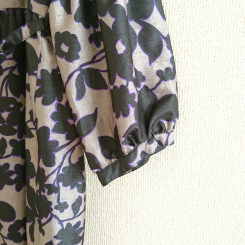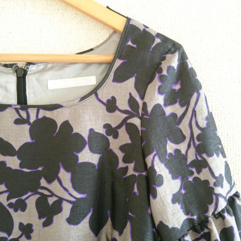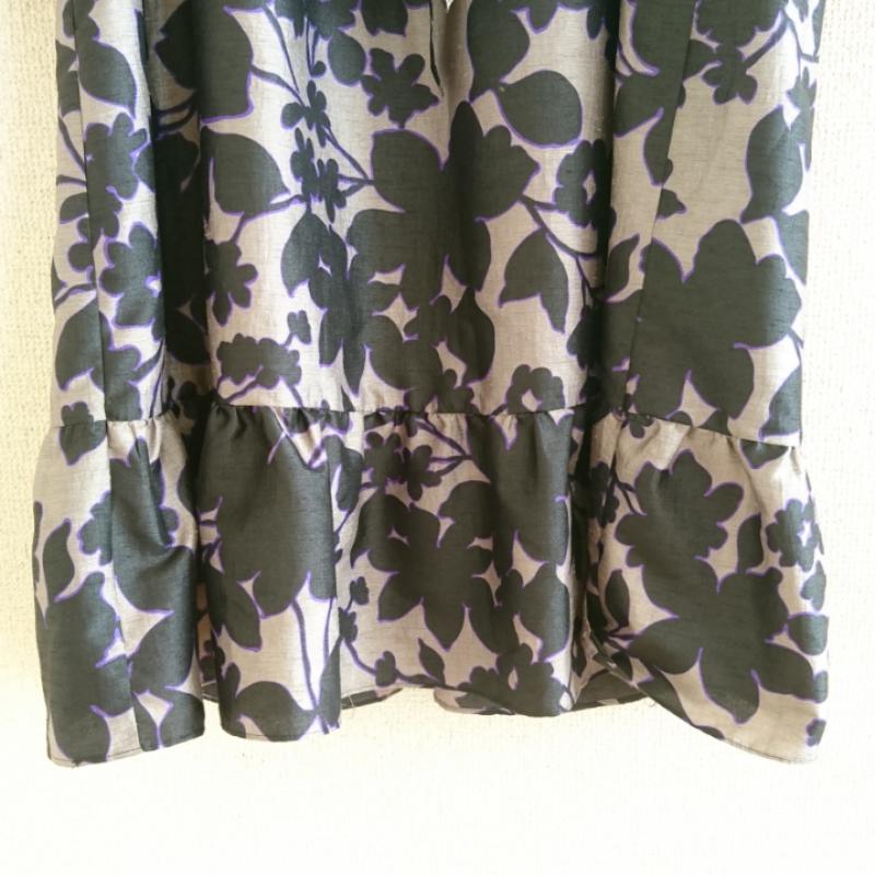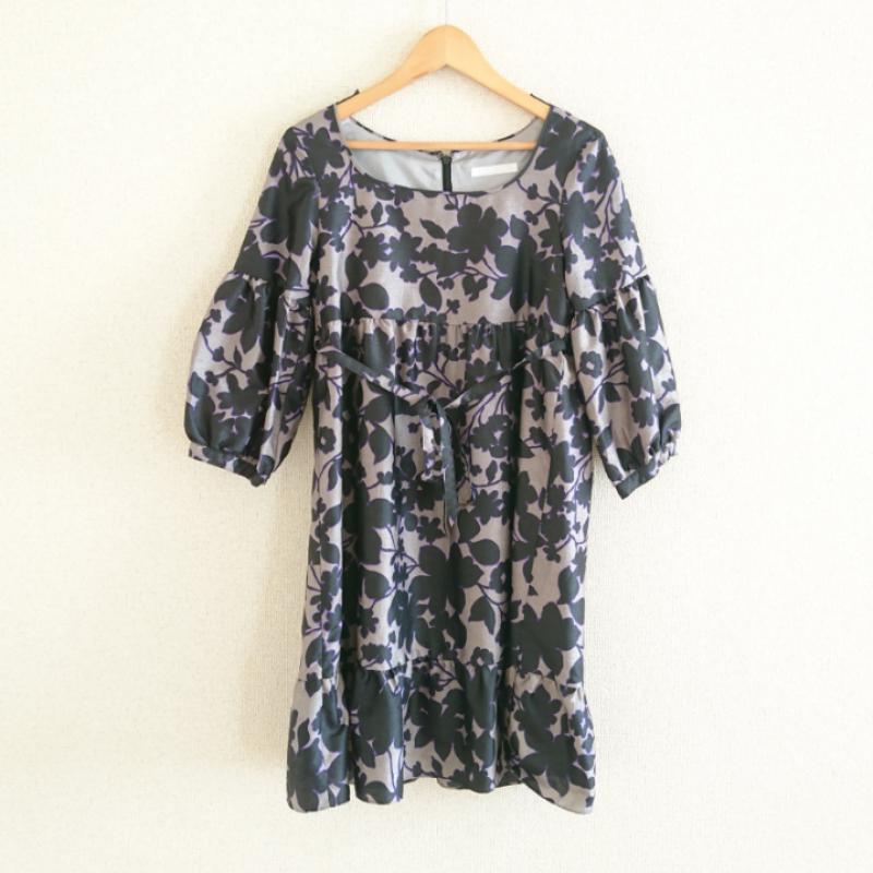 ニコルホワイト NICOLE white ワンピース ひざ丈スカート 38 花柄 灰 / グレー / X 黒 / ブラック / X 紫 / パープル / レディース USED 古着 中古 10013475