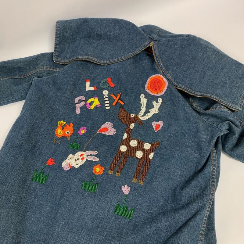 アルベロベロ OLLEBOREBLA コート コート一般 デニム ビーズ M ロゴ、文字 X 花柄 X インディゴ / インディゴ / X 青 / ブルー / レディース USED 古着 中古 10013928