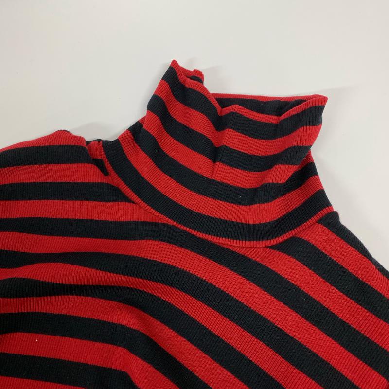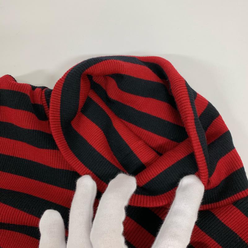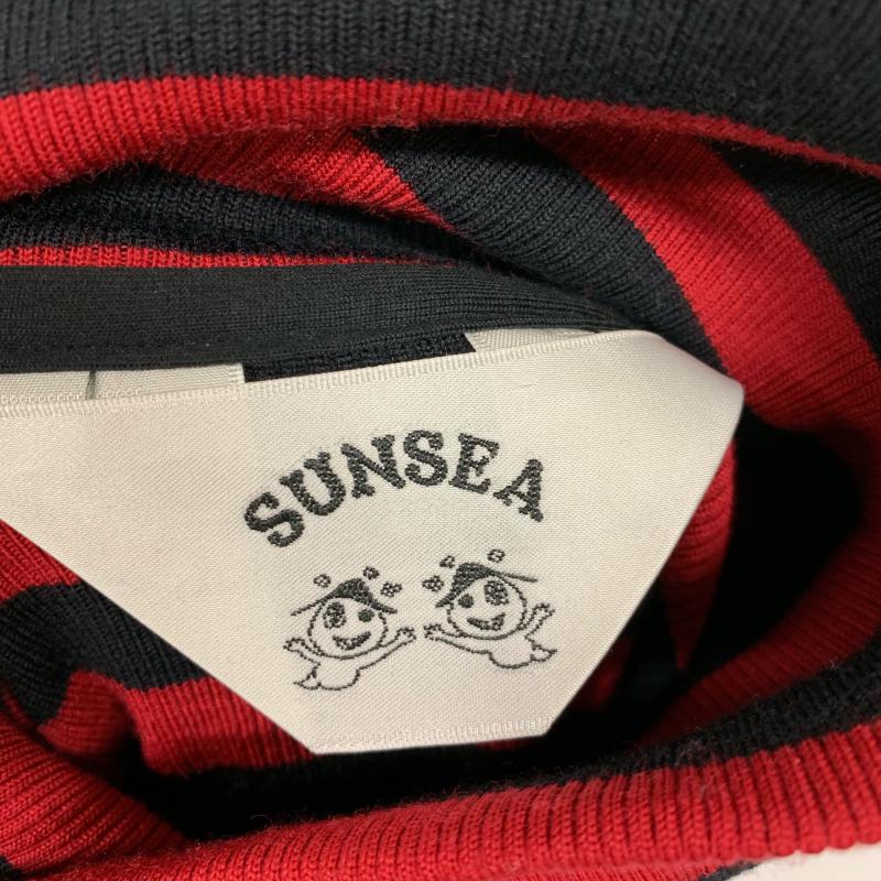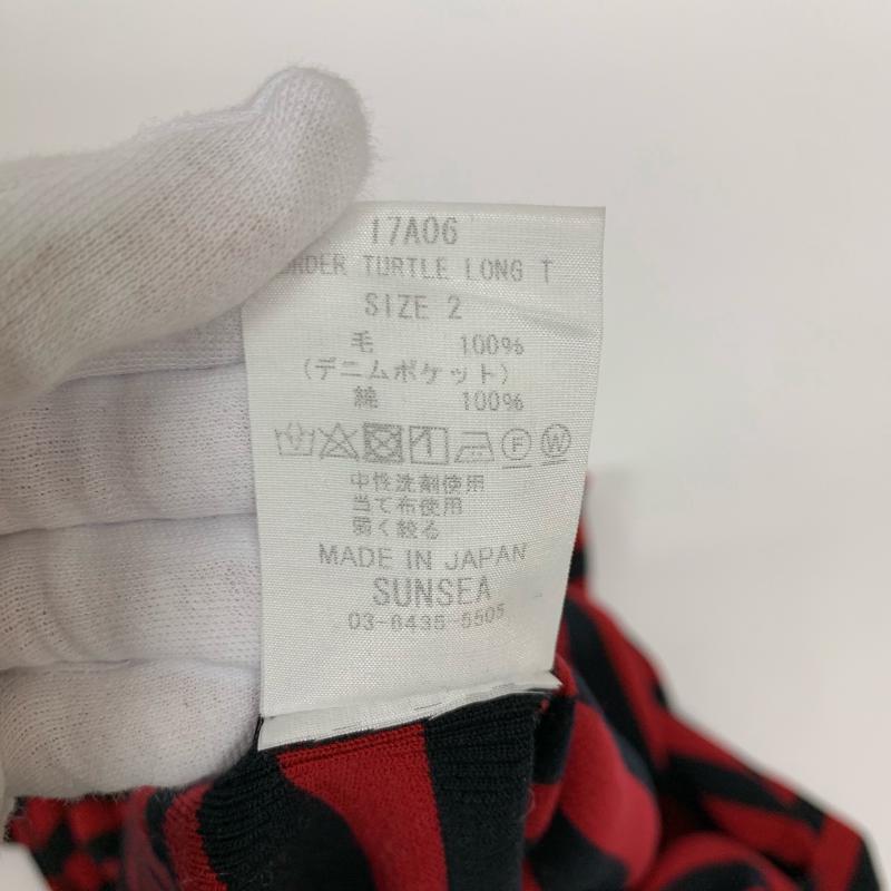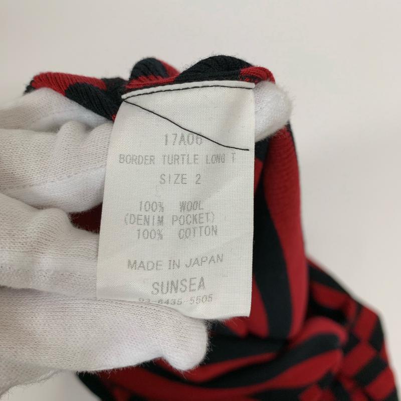 サンシー SUNSEA カットソー 長袖 タートルネック ポケット ウール コットン 2 ボーダー柄 黒 / ブラック / X 赤 / レッド / メンズ USED 古着 中古 10015213