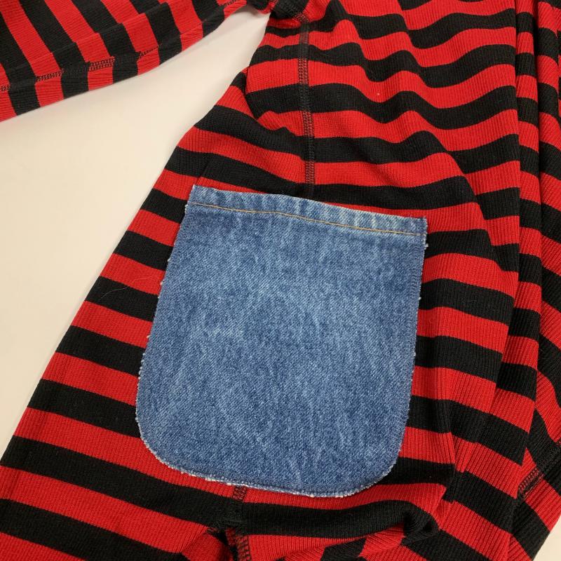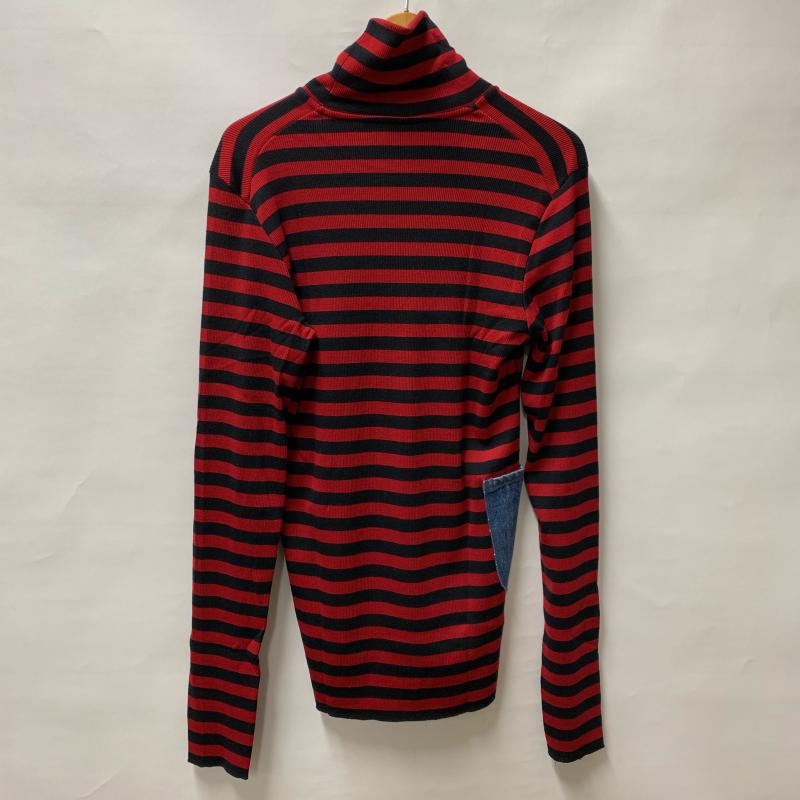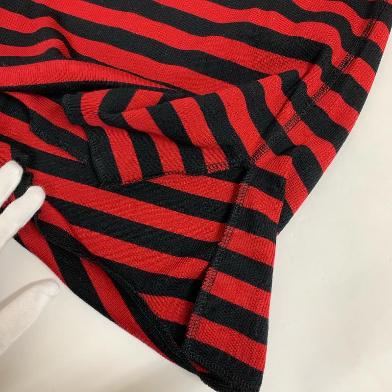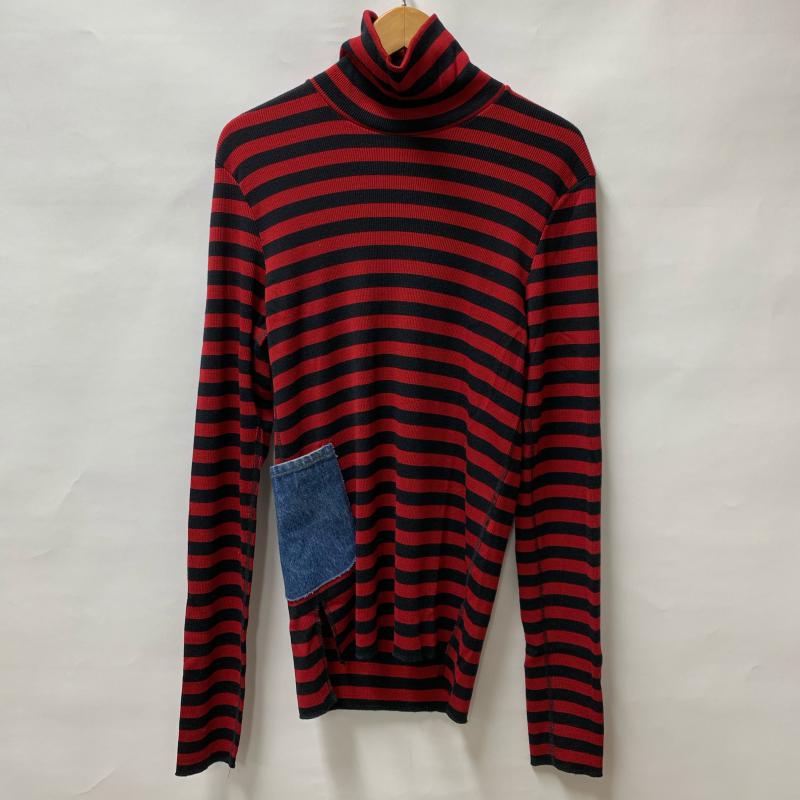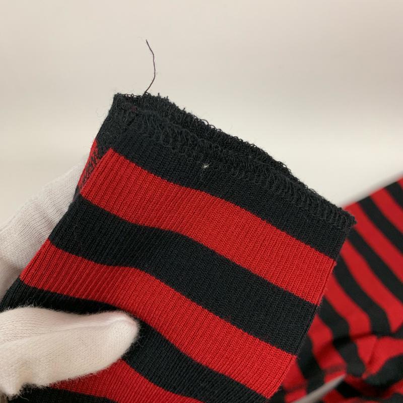 サンシー SUNSEA カットソー 長袖 タートルネック ポケット ウール コットン 2 ボーダー柄 黒 / ブラック / X 赤 / レッド / メンズ USED 古着 中古 10015213
