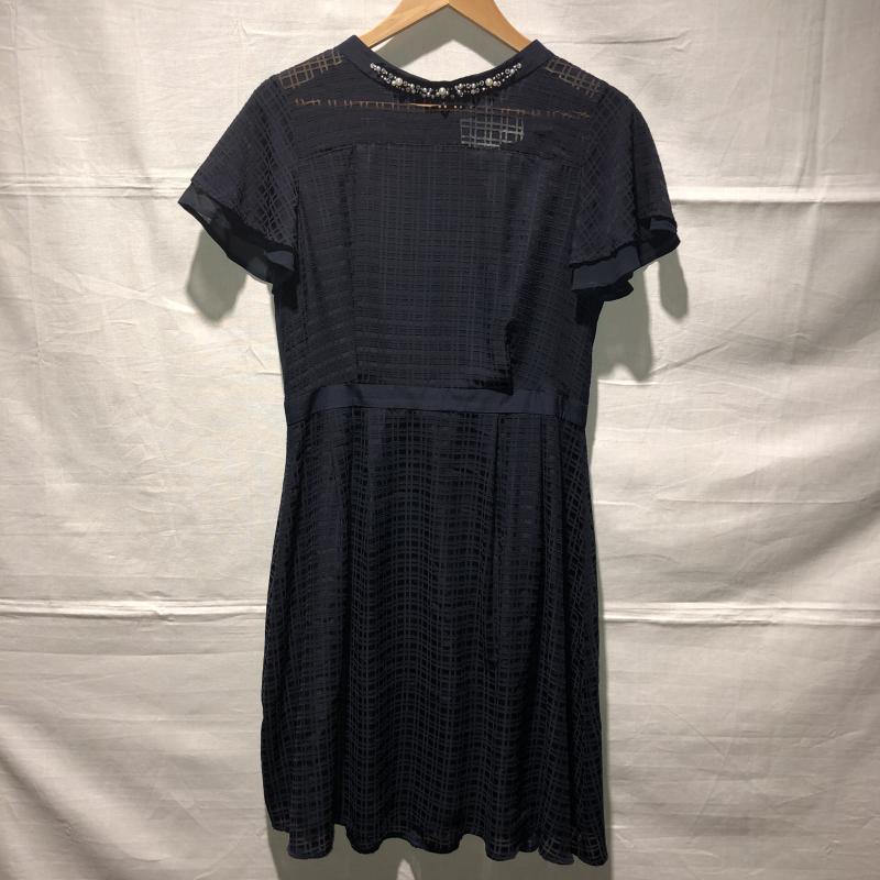 グローブ grove ワンピース ひざ丈スカート M 幾何柄 紺 / ネイビー / レディース USED 古着 中古 10015826