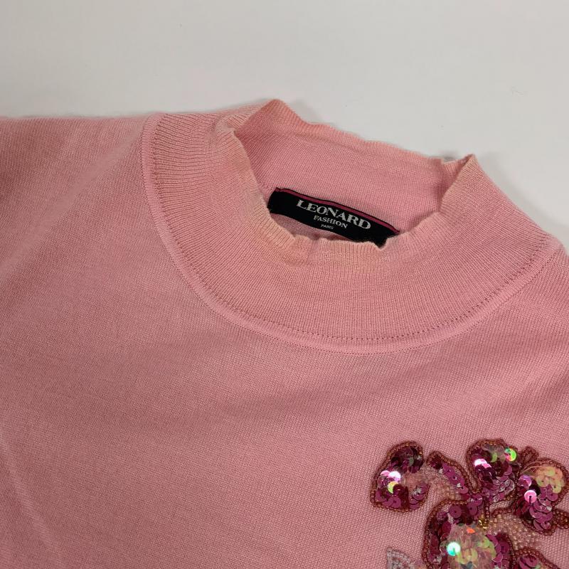 レオナール LEONARD ニット、セーター 半袖 LL 無地 X 桃 / ピンク / レディース USED 古着 中古 10015904