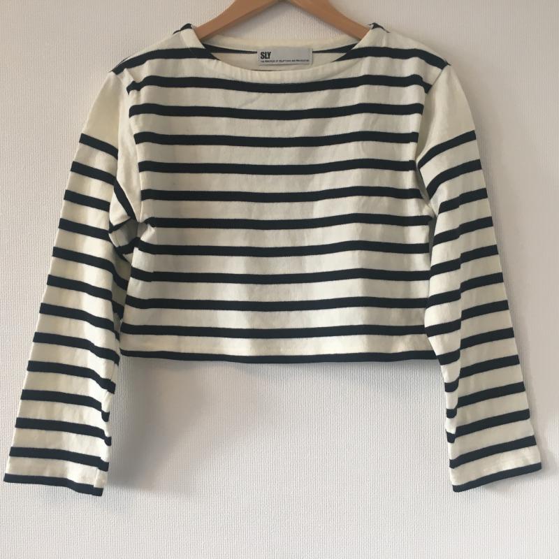 スライ SLY カットソー 長袖 FREE ボーダー柄 X 総柄 白 / ホワイト / X 黒 / ブラック / レディース USED 古着 中古 10016862