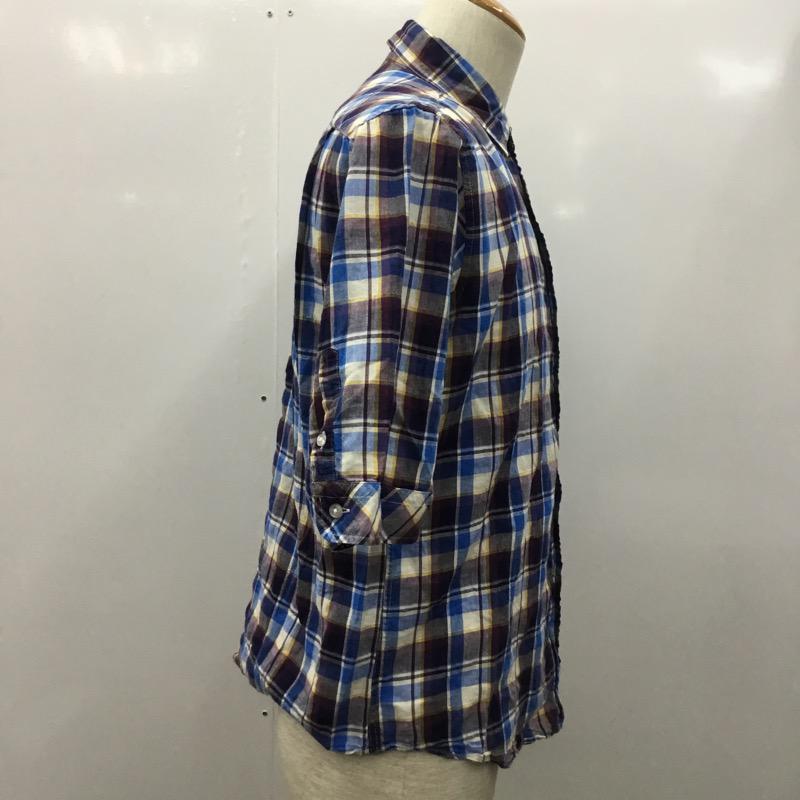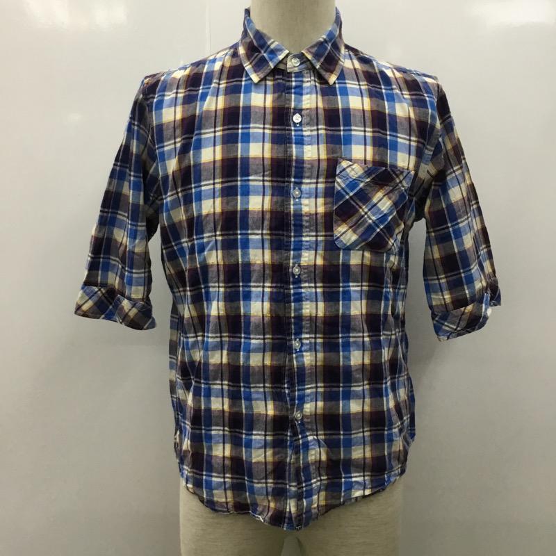 レイジブルー RAGEBLUE シャツ、ブラウス 七分袖 チェックシャツ M チェック 青 / ブルー / X 紫 / パープル / X アイボリー / アイボリー / X 黄 / イエロー / メンズ USED 古着 中古 10023867