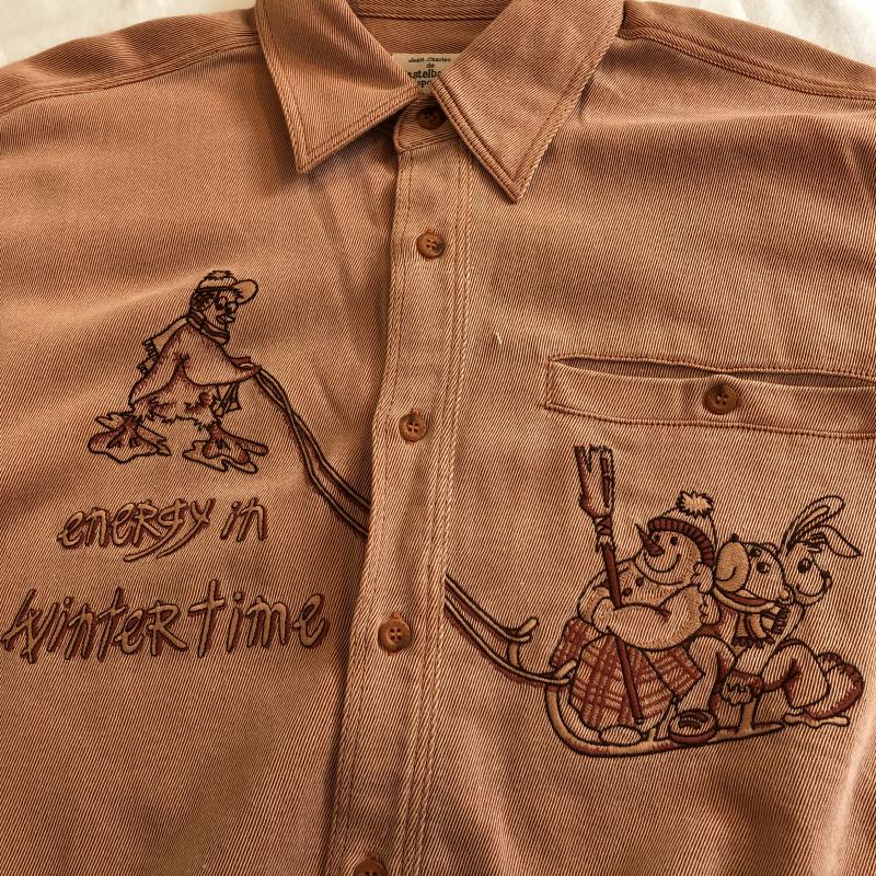 カステルバジャック スポーツ CASTELBAJAC SPORT シャツ、ブラウス 長袖 動物柄刺繍シャツ 雪だるま オーバーサイズ 2 無地 X ロゴ、文字 X 刺繍 X ワンポイント X キャラクター X X アニマル柄 橙 / オレンジ / X 茶 / ブラウン / メンズ USED 古着 中古 10029103