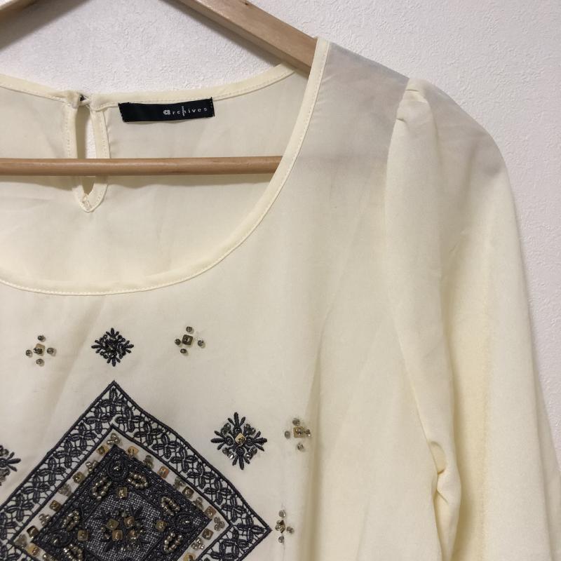 アルシーヴ archives カットソー 七分袖 M 無地 X 刺繍 X 白 / ホワイト / X 黒 / ブラック / X 金 / ゴールド / レディース USED 古着 中古 10029108