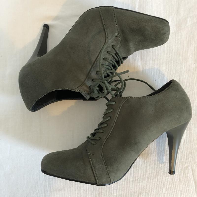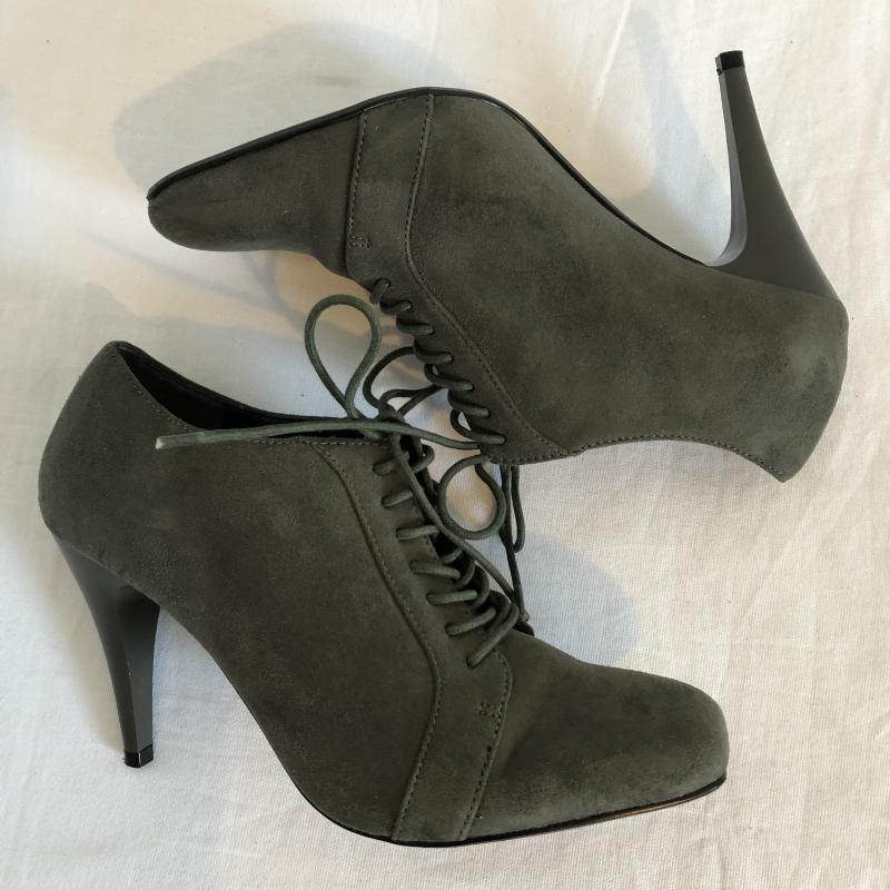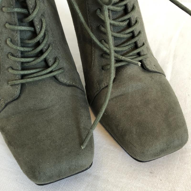 エモダ EMODA ブーツ ブーティ レースアップ スクエアトゥ ハイヒール スウェード調 M 無地 灰 / グレー / レディース USED 古着 中古 10029362