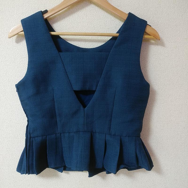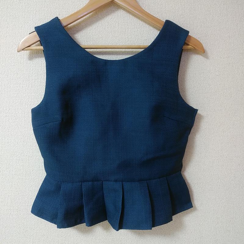 ダズリン dazzlin カットソー 半袖 裾プリーツ M チェック 紺 / ネイビー / レディース USED 古着 中古 10031142