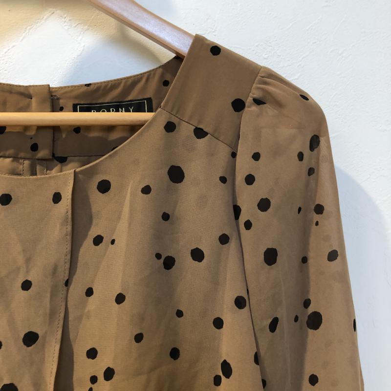 ボルニー BORNY チュニック 長袖 S ドット ベージュ / ベージュ / X 黒 / ブラック / レディース USED 古着 中古 10033015