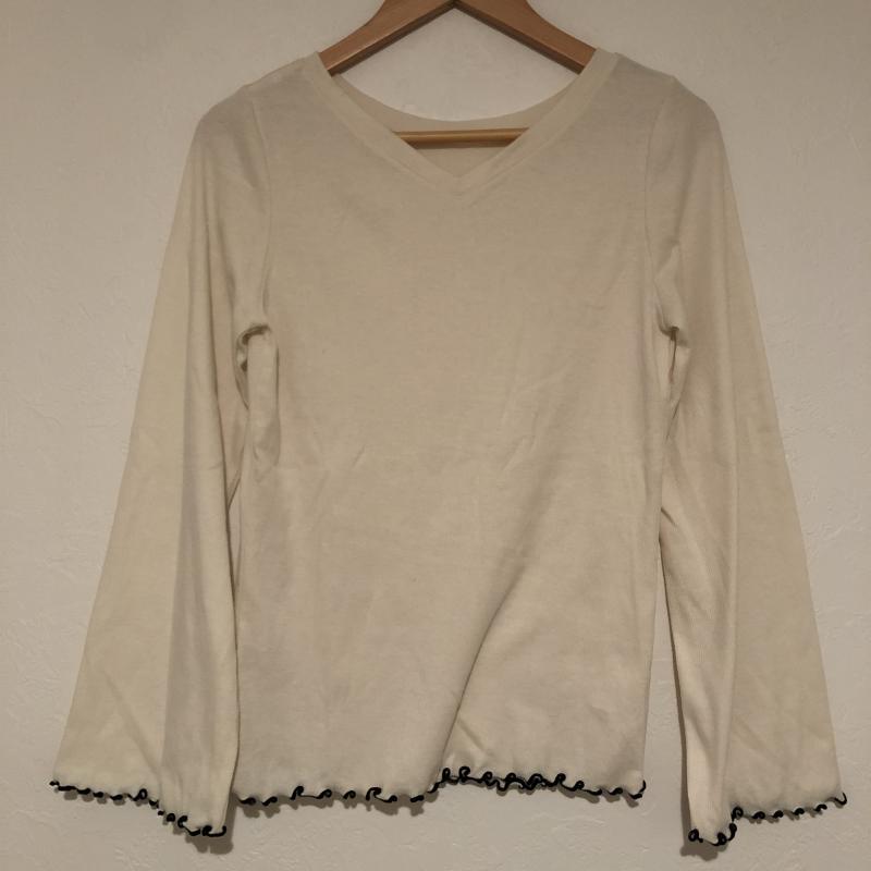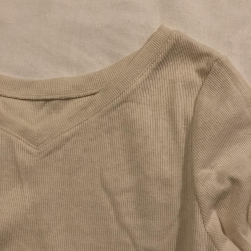 アースミュージックアンドエコロジー earth music&ecology カットソー 長袖 Vネック リブカットソー M 無地 ベージュ / ベージュ / X 黒 / ブラック / レディース USED 古着 中古 10033046