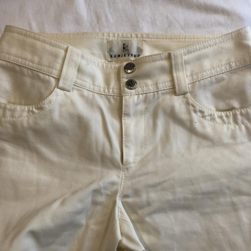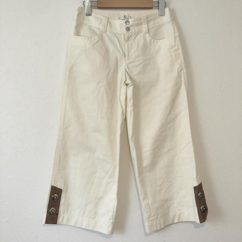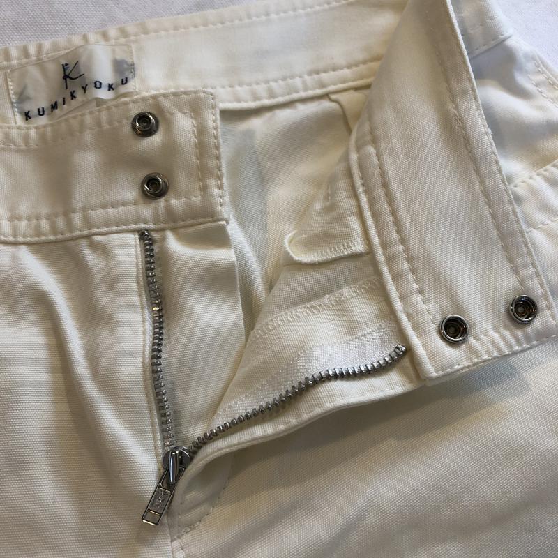 クミキョク KUMIKYOKU パンツ スラックス デザインワイドパンツ フェイクレザー チノ 2 無地 X 白 / ホワイト / X 茶 / ブラウン / レディース USED 古着 中古 10034986