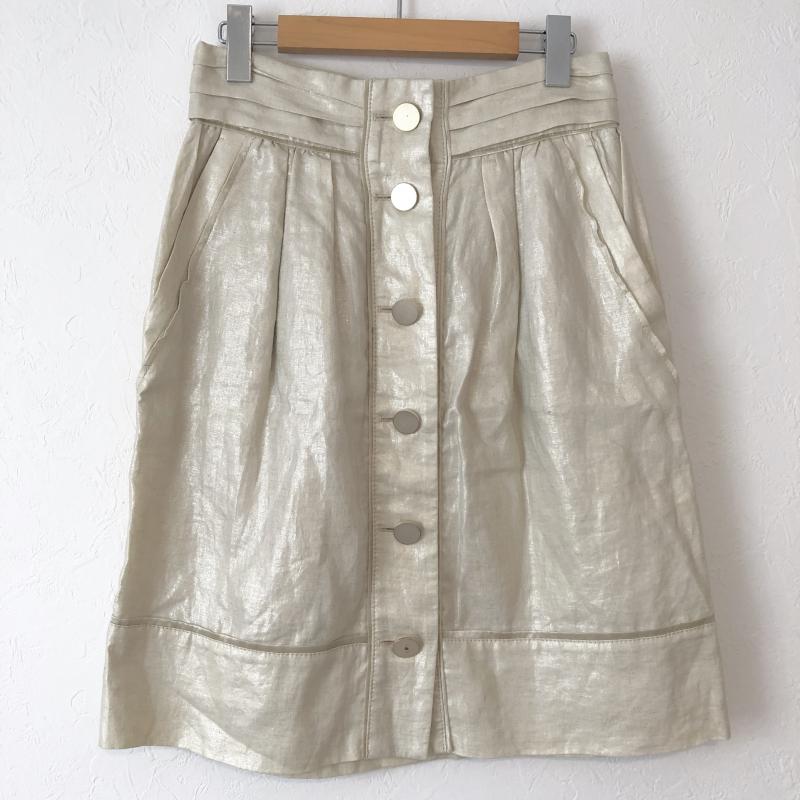 ボディードレッシングデラックス BODY DRESSING Deluxe スカート ひざ丈スカート ボタンデザインスカート ラメ 38 無地 ベージュ / ベージュ / X 銀 / シルバー / レディース USED 古着 中古 10035356