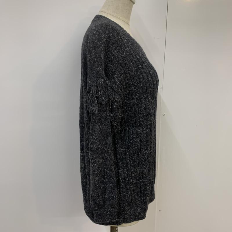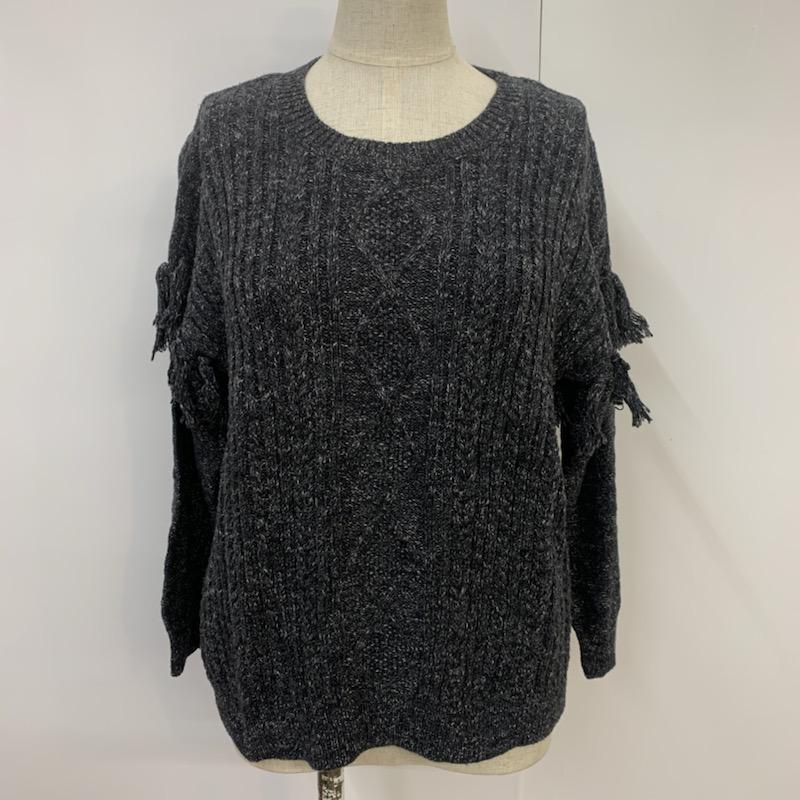 スタディオクリップ studio CLIP ニット、セーター 長袖 クルーネック フリンジ 無地 チャコールグレー / チャコールグレー / レディース USED 古着 中古 10041456