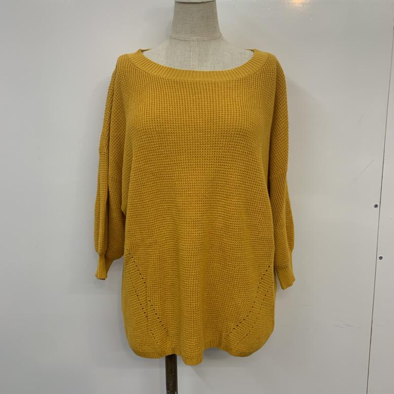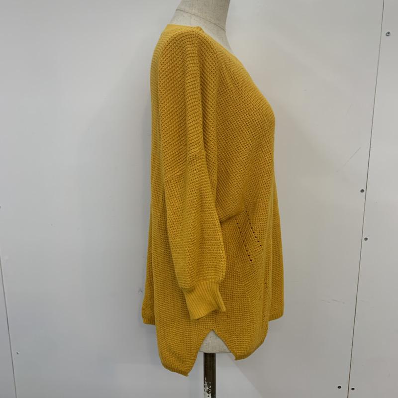アズールバイマウジー AZUL BY MOUSSY ニット、セーター 七分袖 ワッフル編み7分袖クルーネックニットプルオーバー M 無地 黄 / イエロー / レディース USED 古着 中古 10041477