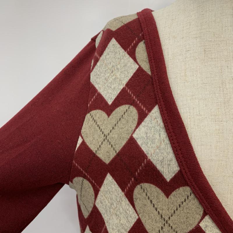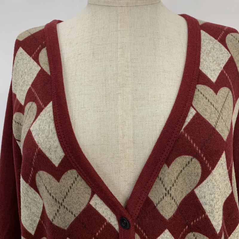 オリーブデオリーブ OLIVE des OLIVE カーディガン 長袖 アーガイル アーガイル柄 えんじ / ワインレッド / レディース USED 古着 中古 10042951