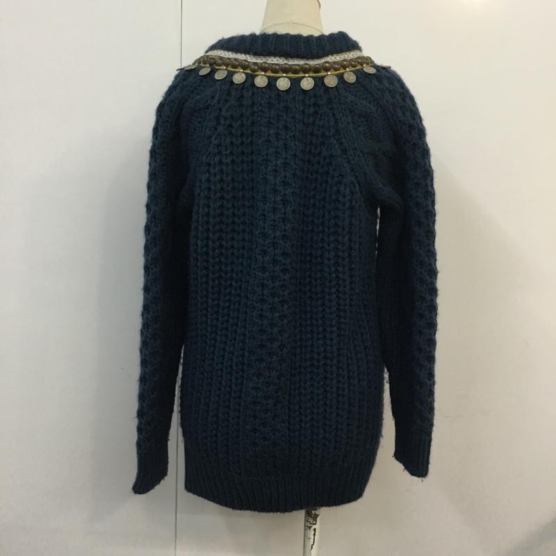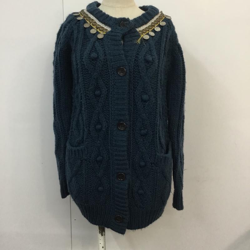 アナザーエディション Another Edition カーディガン 長袖 5615-199-0757 ケーブルニット クルーネック 青 / ブルー / レディース USED 古着 中古 10054073