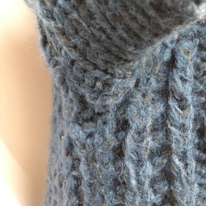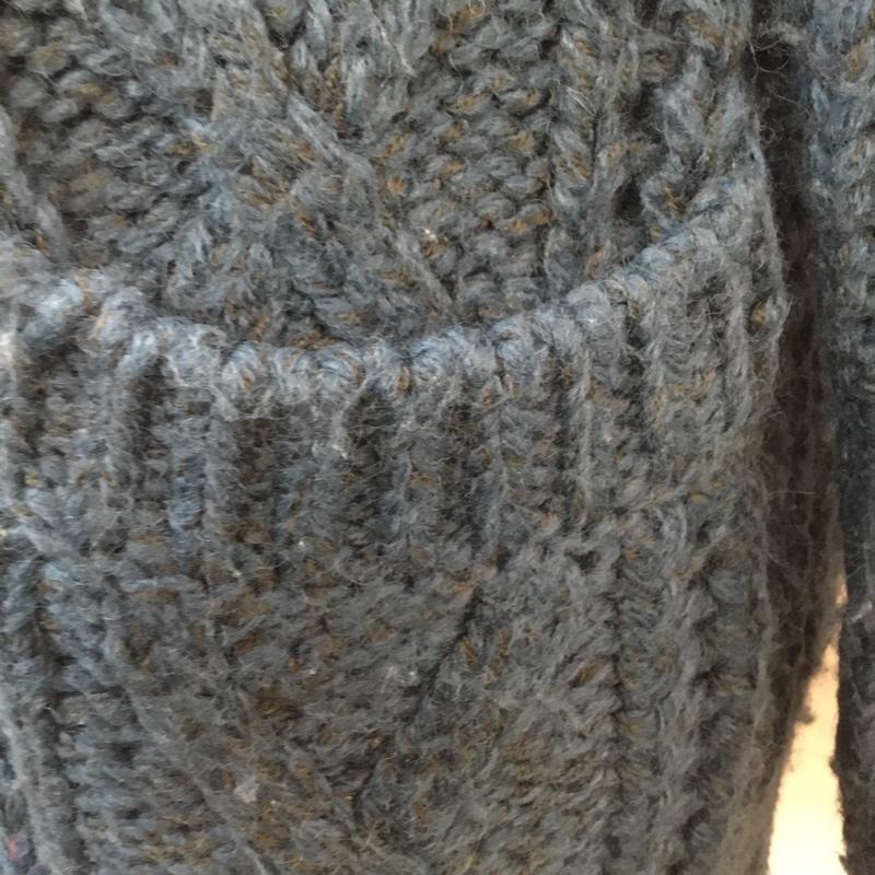 一番上のボタンホールにほつれがあります。、全体的に毛玉と毛羽立ちがあります。