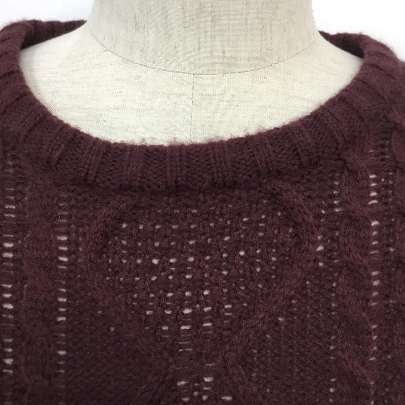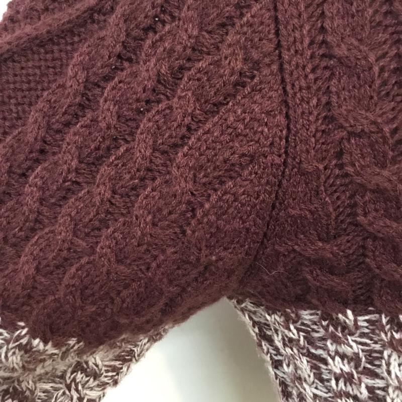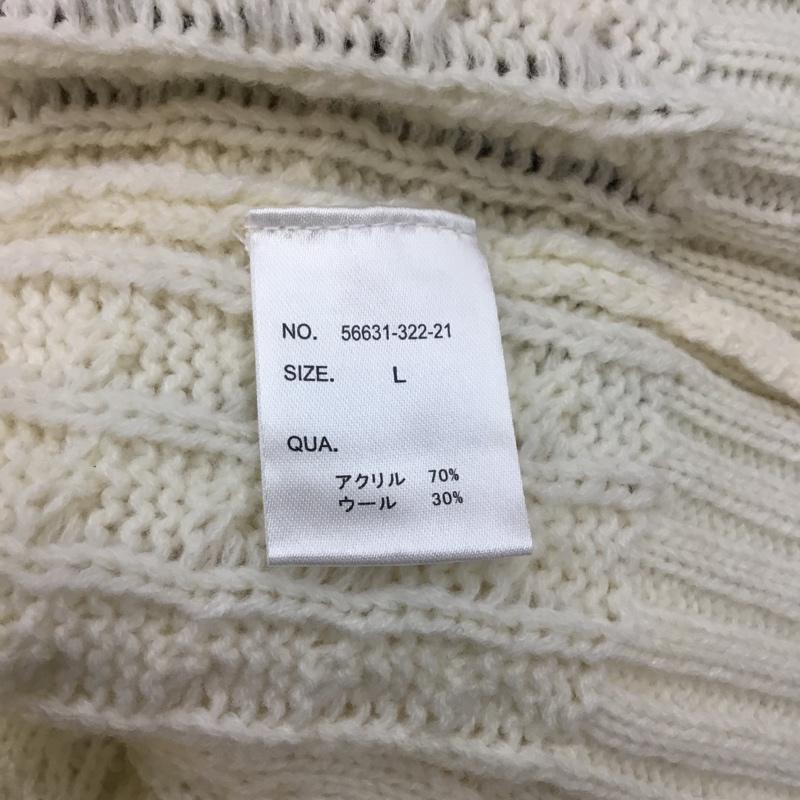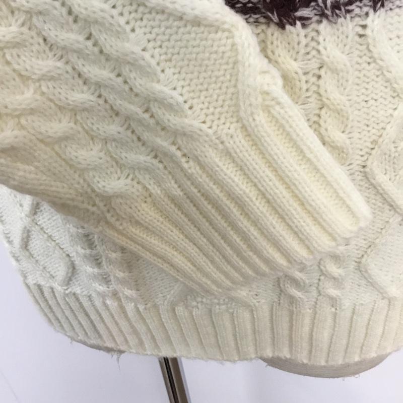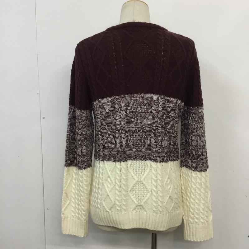 チャオパニック CIAOPANIC ニット、セーター 長袖 56631-322-21 クルーネック ケーブル編み L ボーダー柄 えんじ / ワインレッド / X 白 / ホワイト / メンズ USED 古着 中古 10062557