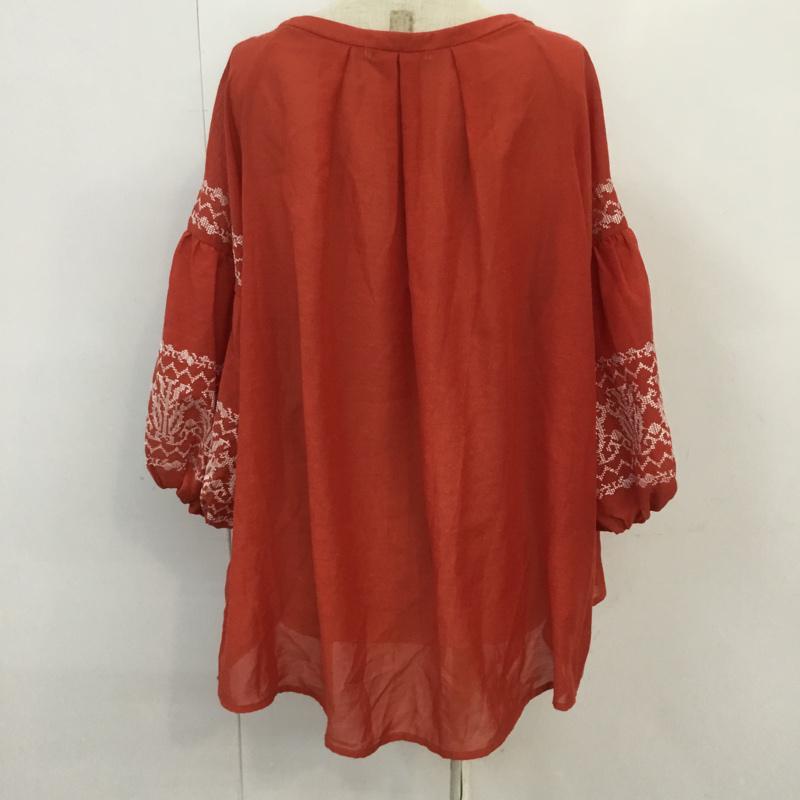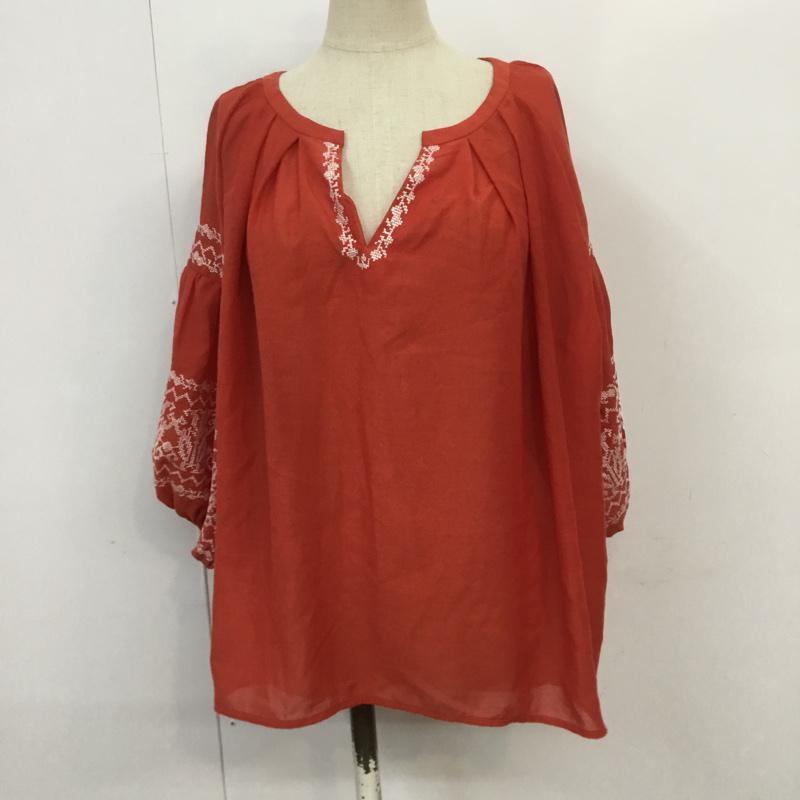 ジーナシス JEANASIS カットソー 七分袖 FREE 無地 X 刺繍 橙 / オレンジ / レディース USED 古着 中古 10068263