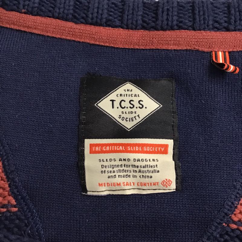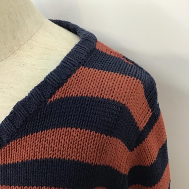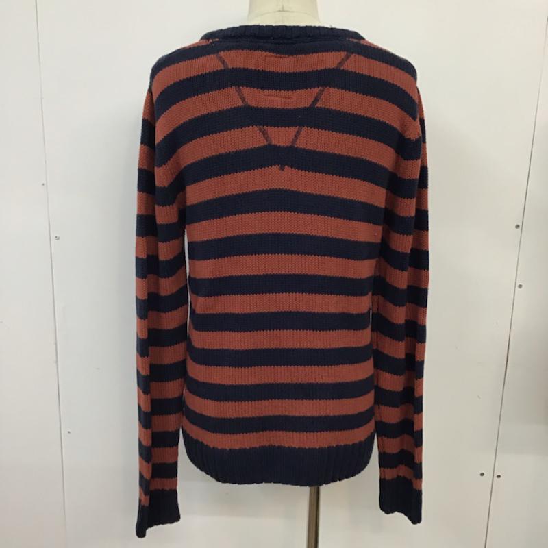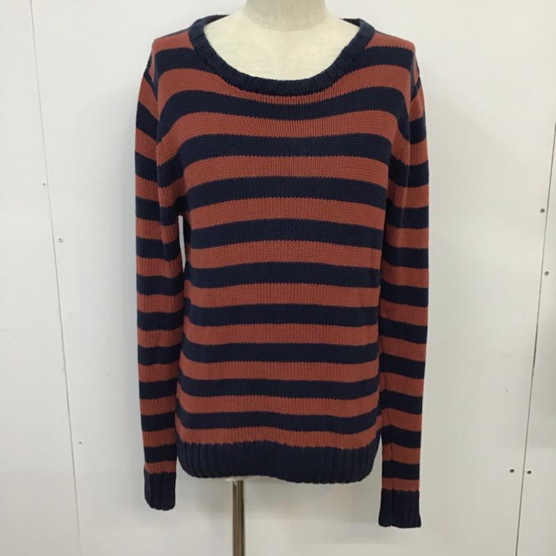 ティーシーエスエス TCSS ニット、セーター 長袖 コットン クルーネック M ボーダー柄 紺 / ネイビー / X えんじ / ワインレッド / メンズ USED 古着 中古 10071610