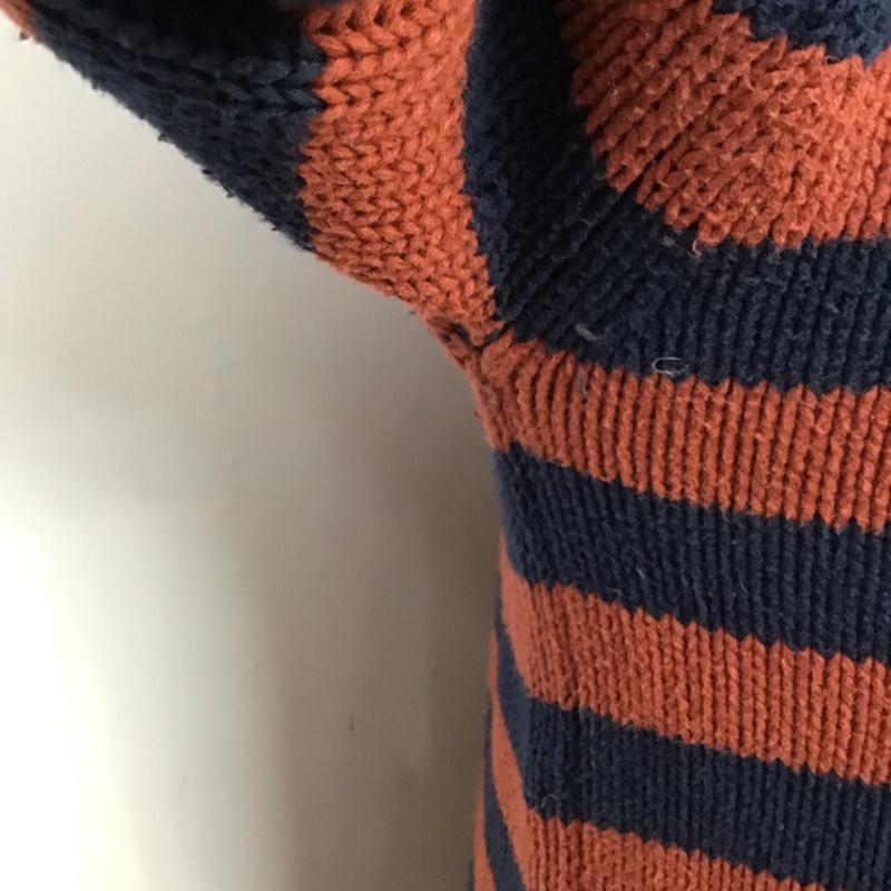 首周りが少しヨレています。、袖口に薄い汚れや毛玉があります。
