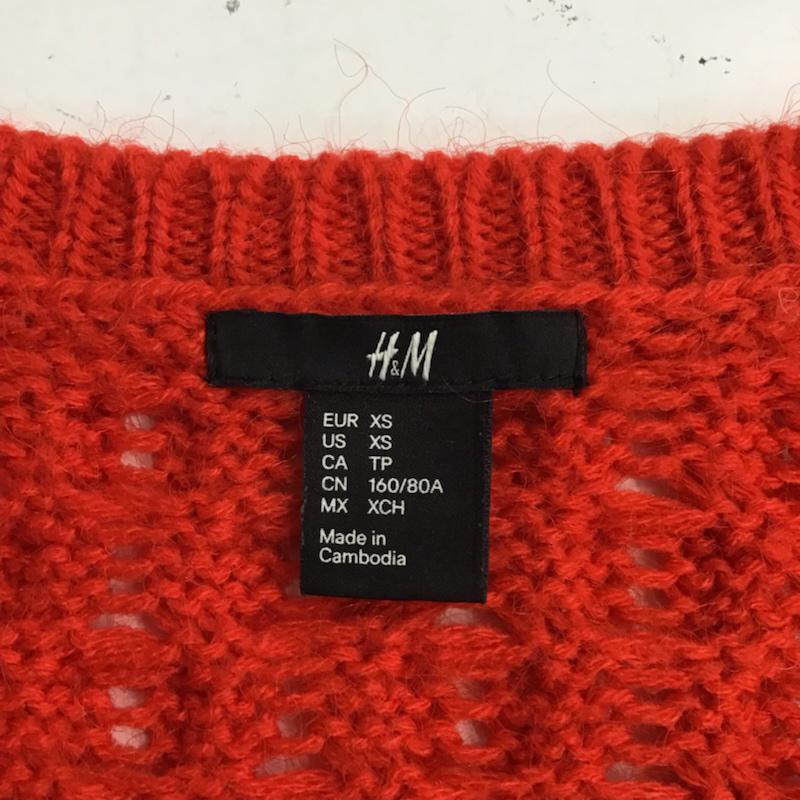 ヘンネスアンドモーリッツ H&M ニット、セーター 長袖 0171008-8 透かし編み XS 無地 赤 / レッド / メンズ USED 古着 中古 10071650