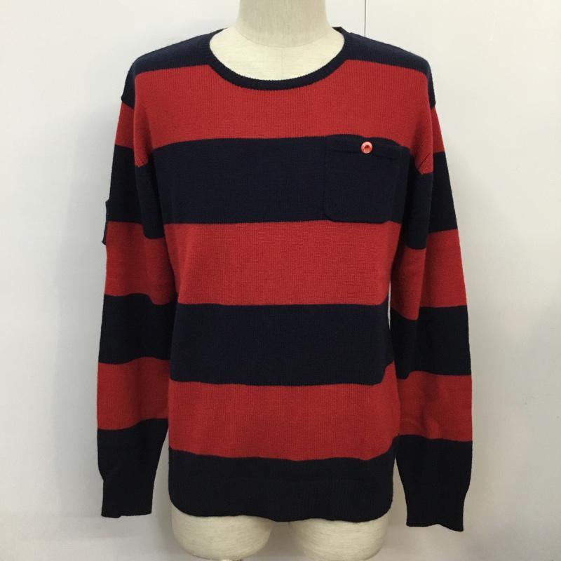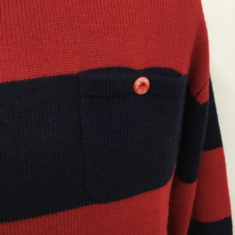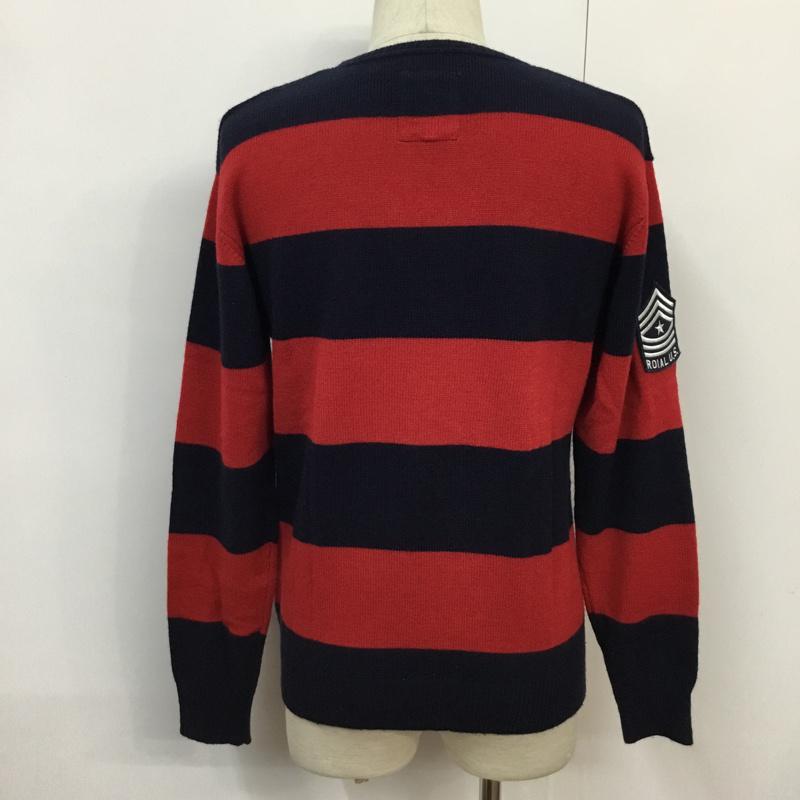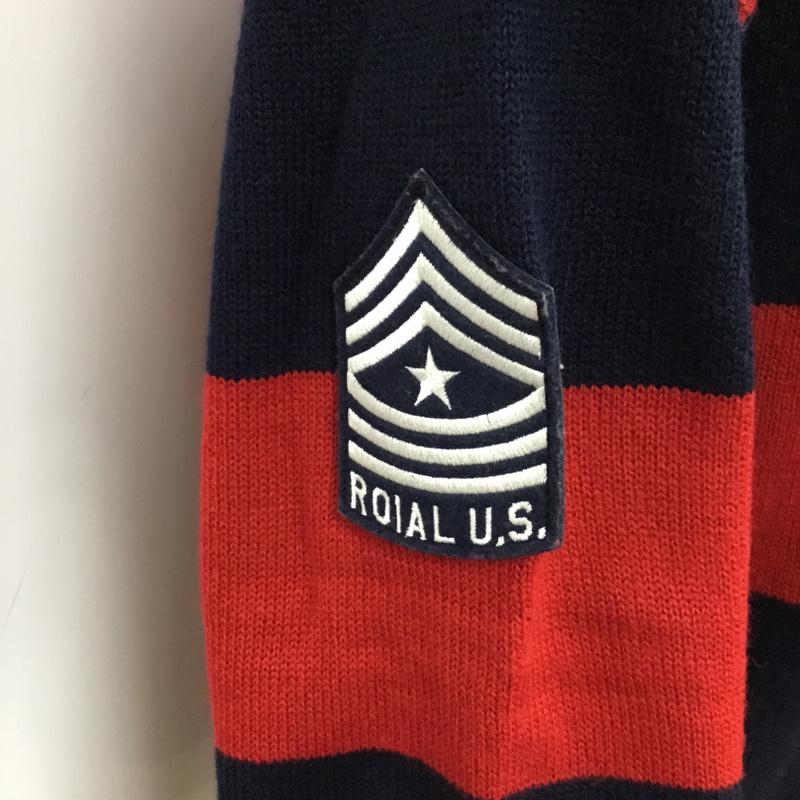 ロイヤル roial ニット、セーター 長袖 KT18 ワッペン 胸ポケット M ワンポイント 赤 / レッド / X 紺 / ネイビー / メンズ USED 古着 中古 10071777
