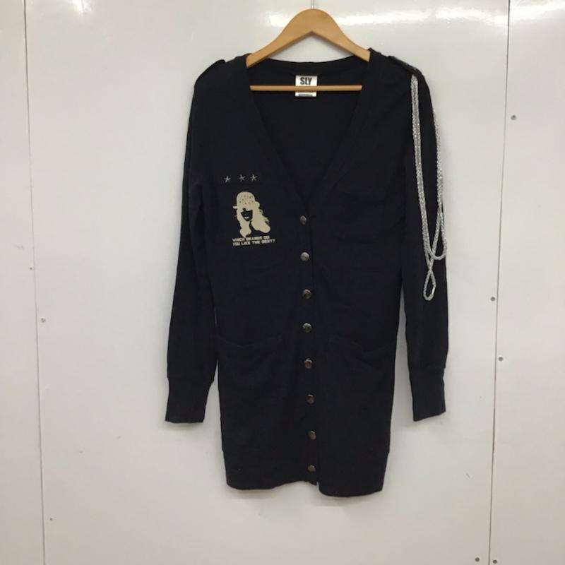 スライ SLY カーディガン 長袖 0303S590-0540 Vネック ロング丈 1 プリント 黒 / ブラック / レディース USED 古着 中古 10072642
