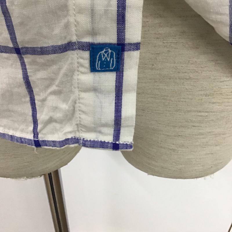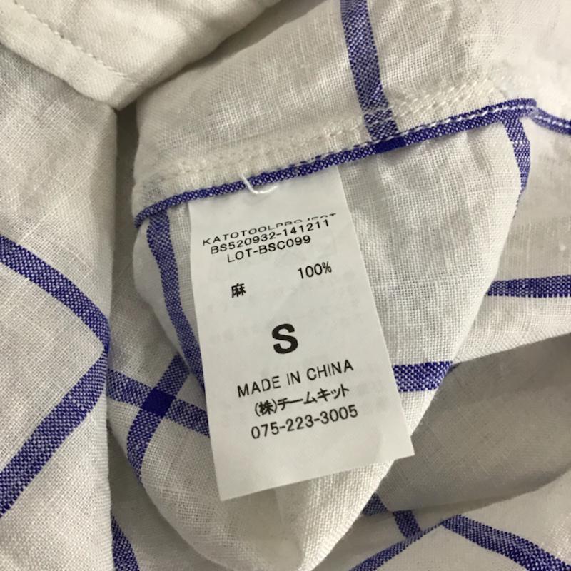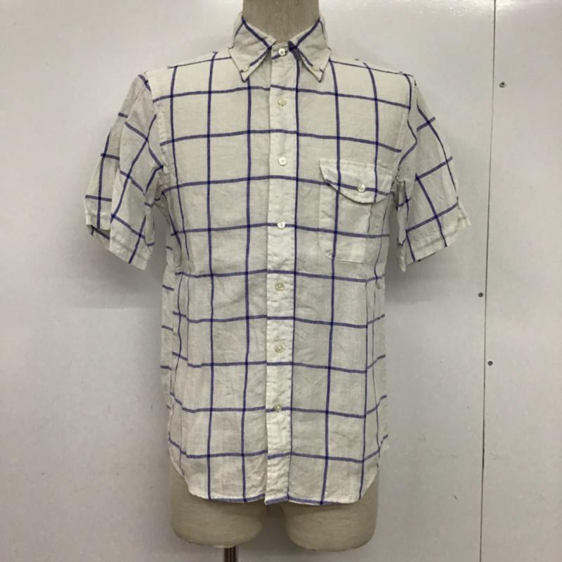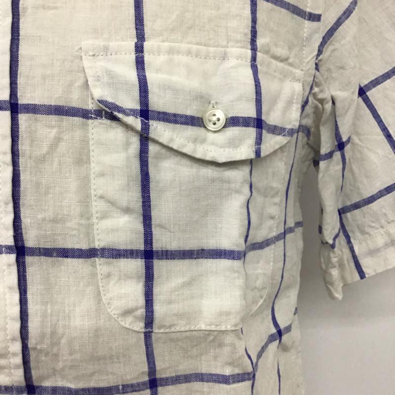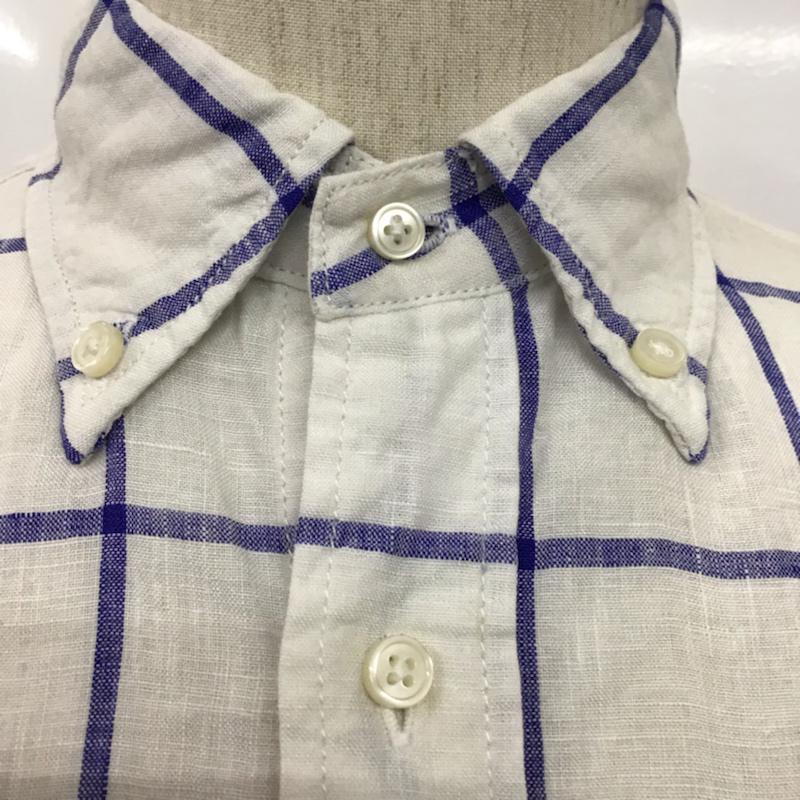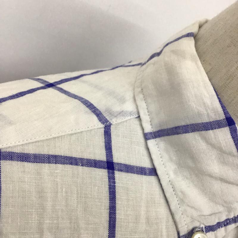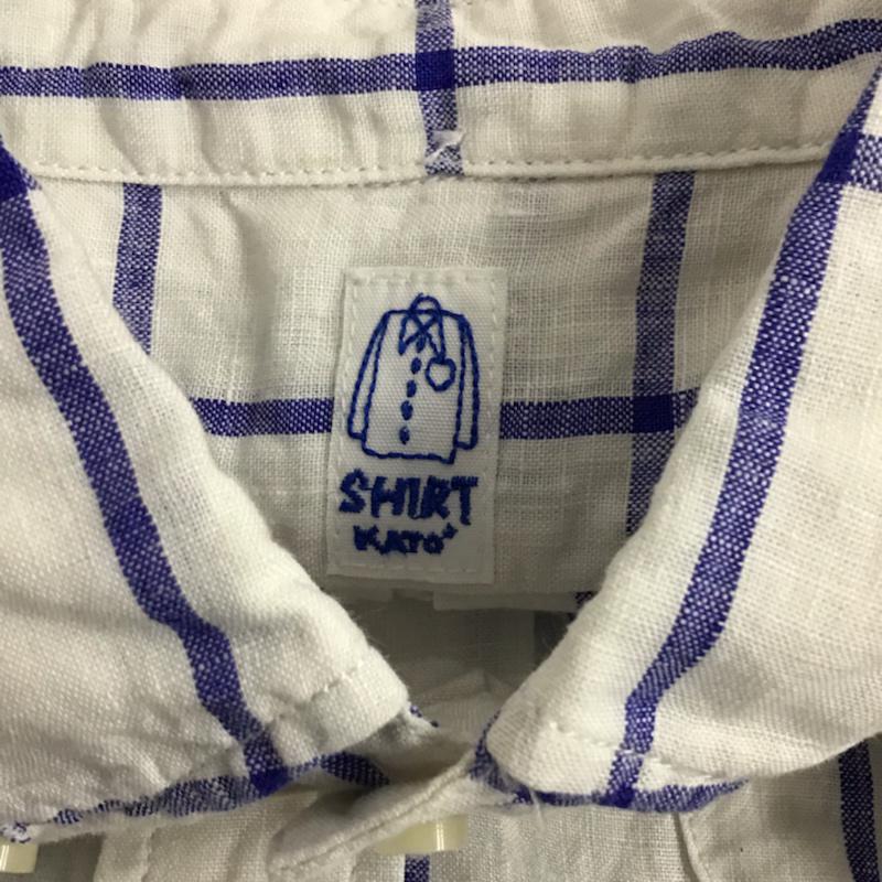 カトー KATO` シャツ、ブラウス 半袖 BS520932-141211 ボタンダウン リネン S チェック 白 / ホワイト / X 紺 / ネイビー / メンズ USED 古着 中古 10073661