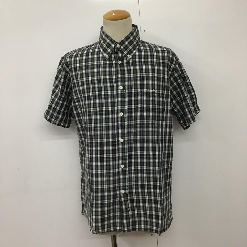アベイシングエイプ A BATHING APE シャツ、ブラウス 半袖 ボタンダウン チェック L ロゴ、文字 白 / ホワイト / X 紺 / ネイビー / X 緑 / グリーン / X 赤 / レッド / メンズ USED 古着 中古 10090938