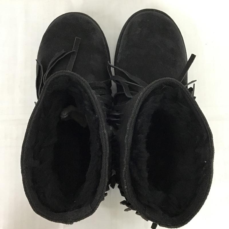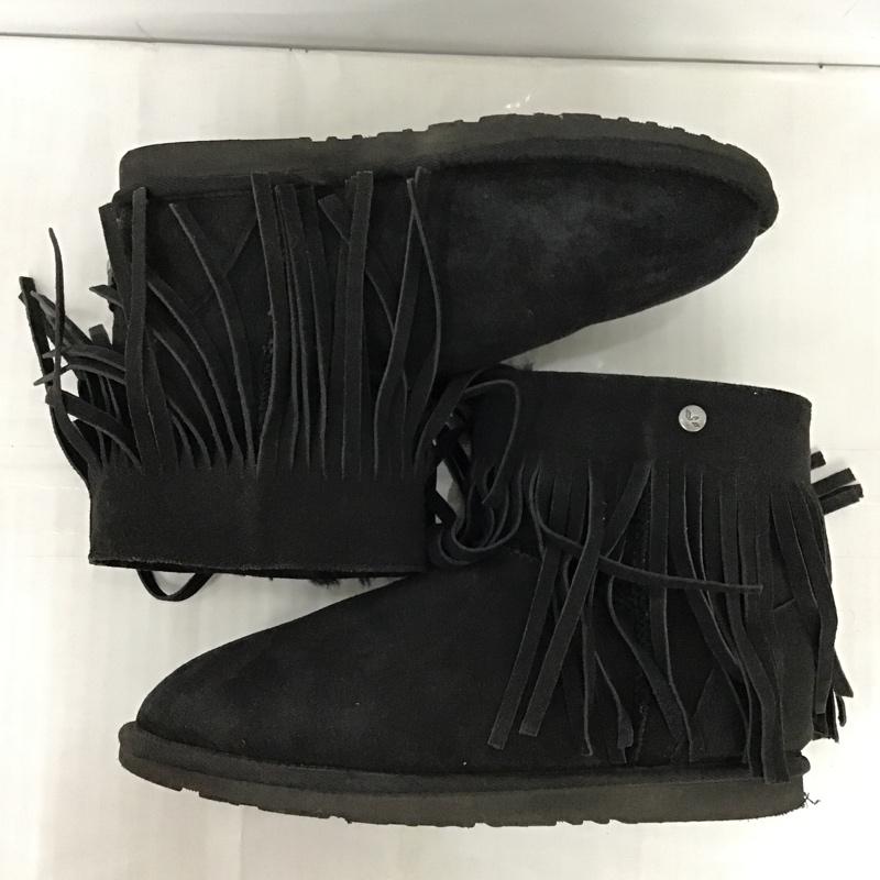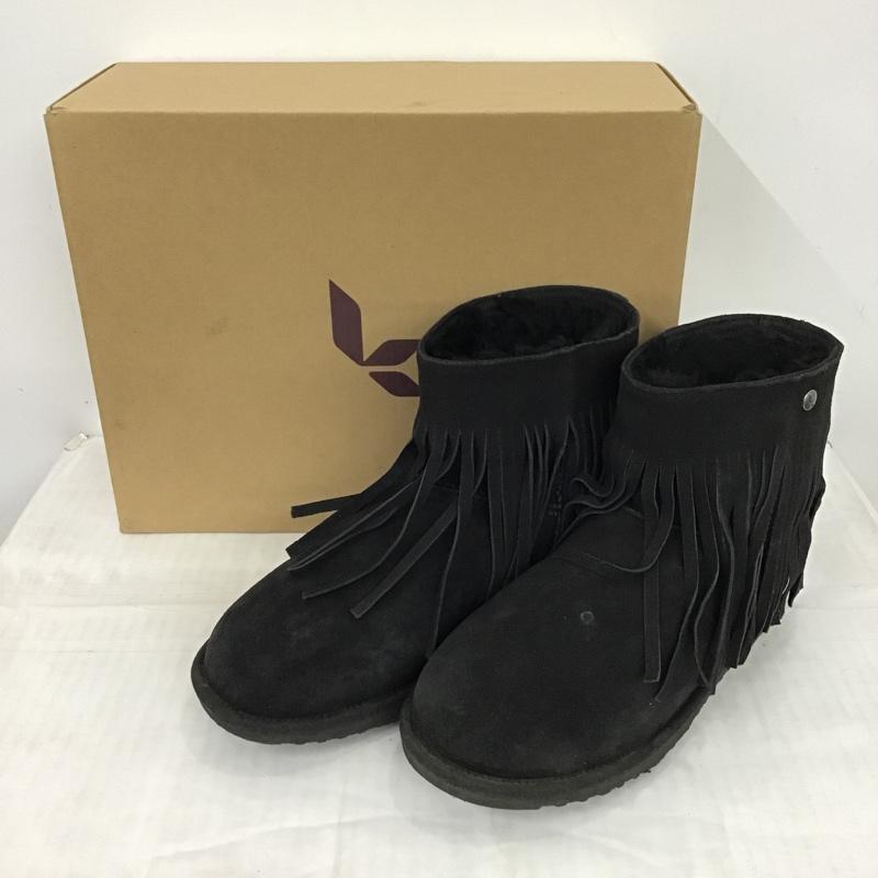 クーラブラ Koolaburra ブーツ ショートブーツ フリンジ US7 箱有 US:7 ワンポイント 黒 / ブラック / レディース USED 古着 中古 10096936