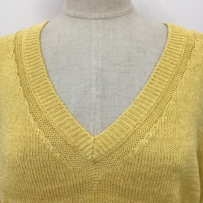 ベイフロー BAYFLOW ニット、セーター 長袖 長袖ニット リブニット セーター Vネックカットソー 3 無地 黄 / イエロー / レディース USED 古着 中古 10097945