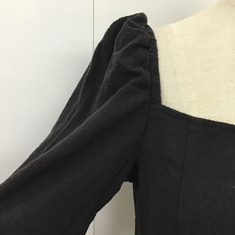 マウジー MOUSSY カットソー 長袖 010CSW30-1420 FRONTBUTTONPUFFSLEEVEBLOUSE ワイドネック 前開シャツ カーディガン 1 無地 黒 / ブラック / レディース USED 古着 中古 10098168