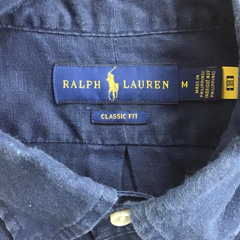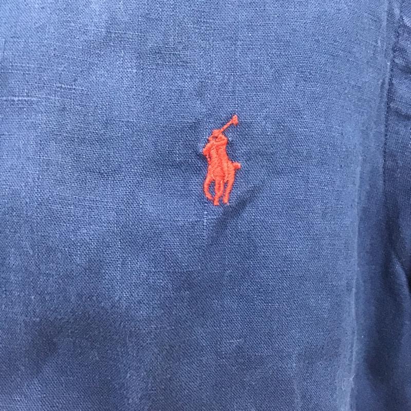 ラルフローレン RALPHLAUREN シャツ、ブラウス 半袖 ボタンダウン リネン M ワンポイント 紺 / ネイビー / メンズ USED 古着 中古 10098417