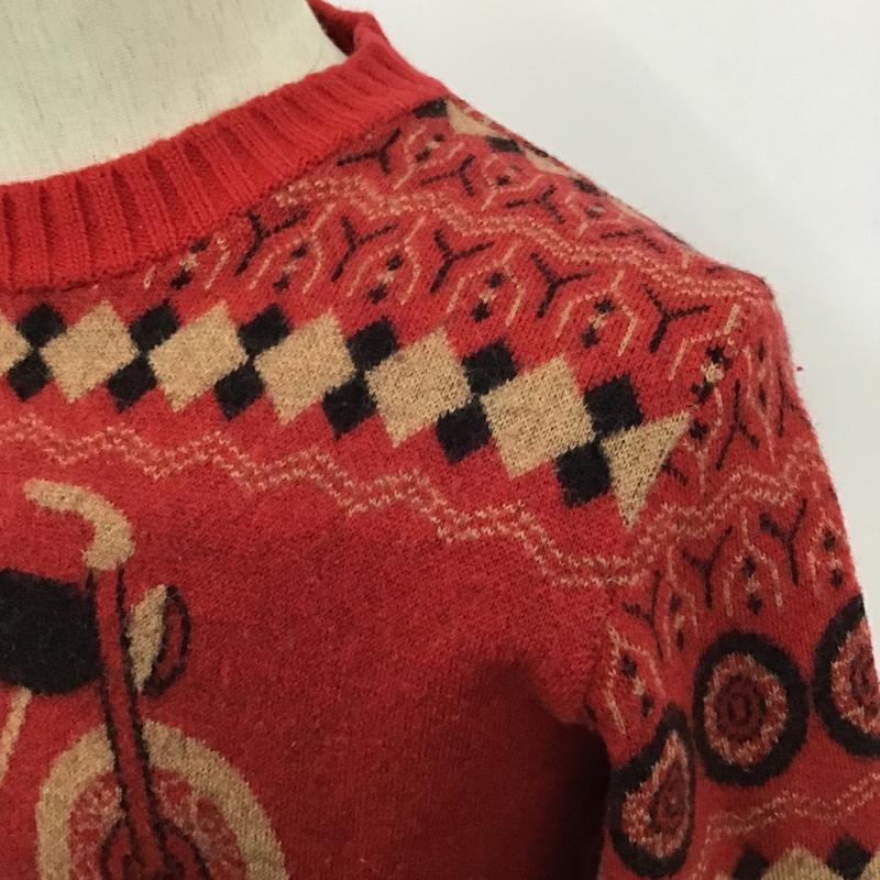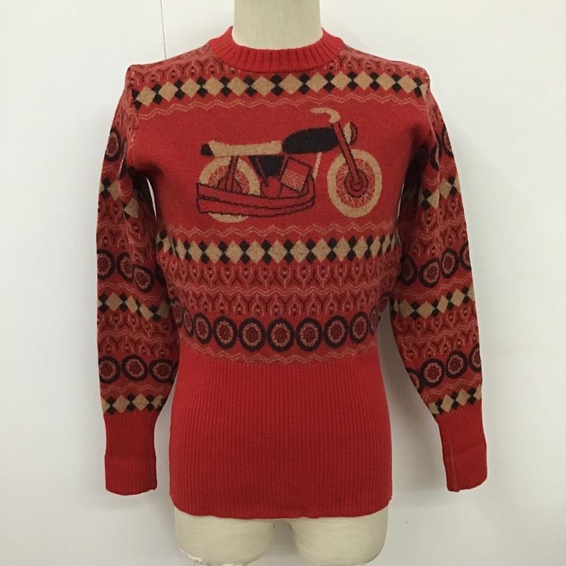 ドライボーンズ Dry Bones ニット、セーター 長袖 クルーネック バイク柄 2 総柄 赤 / レッド / X ベージュ / ベージュ / X 黒 / ブラック / メンズ USED 古着 中古 10098430