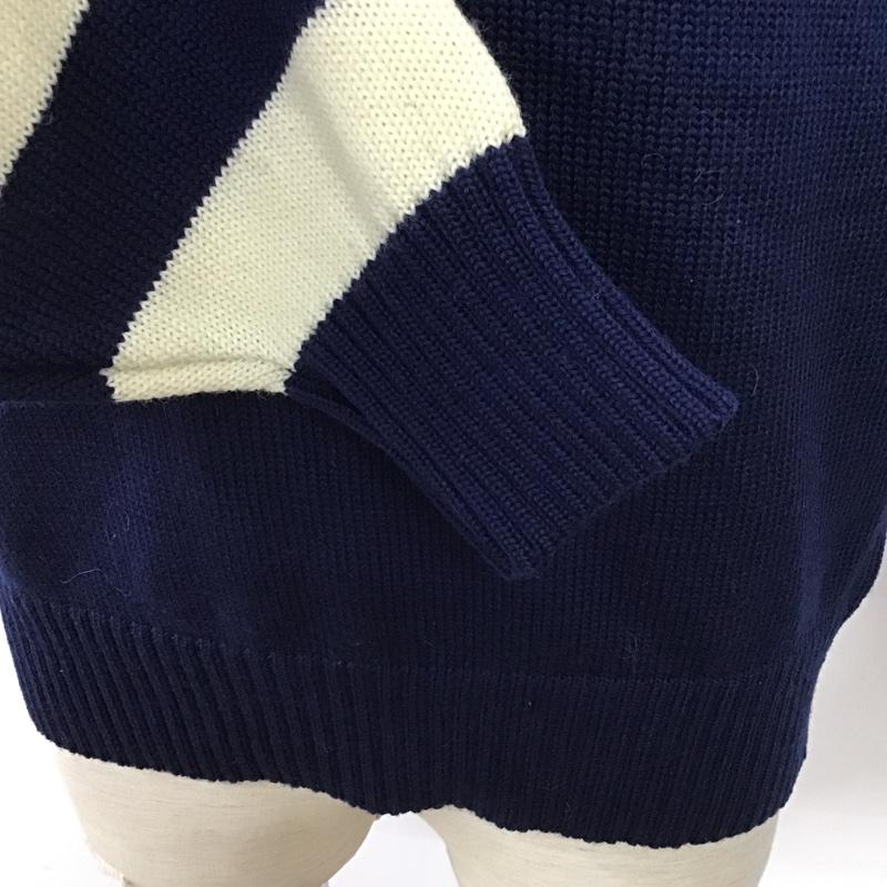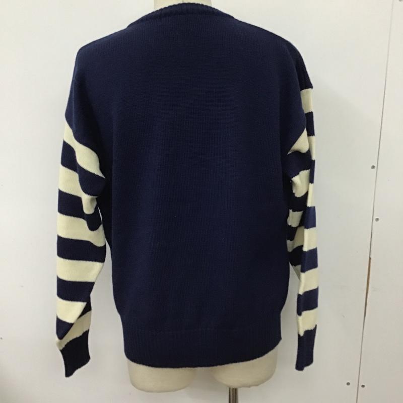 古着 USED ニット、セーター 長袖 長袖ニットカットソー クルーネックカットソー セーター ボーダーニットカットソー L ボーダー柄 白 / ホワイト / X 紺 / ネイビー / メンズ USED 古着 中古 10099237
