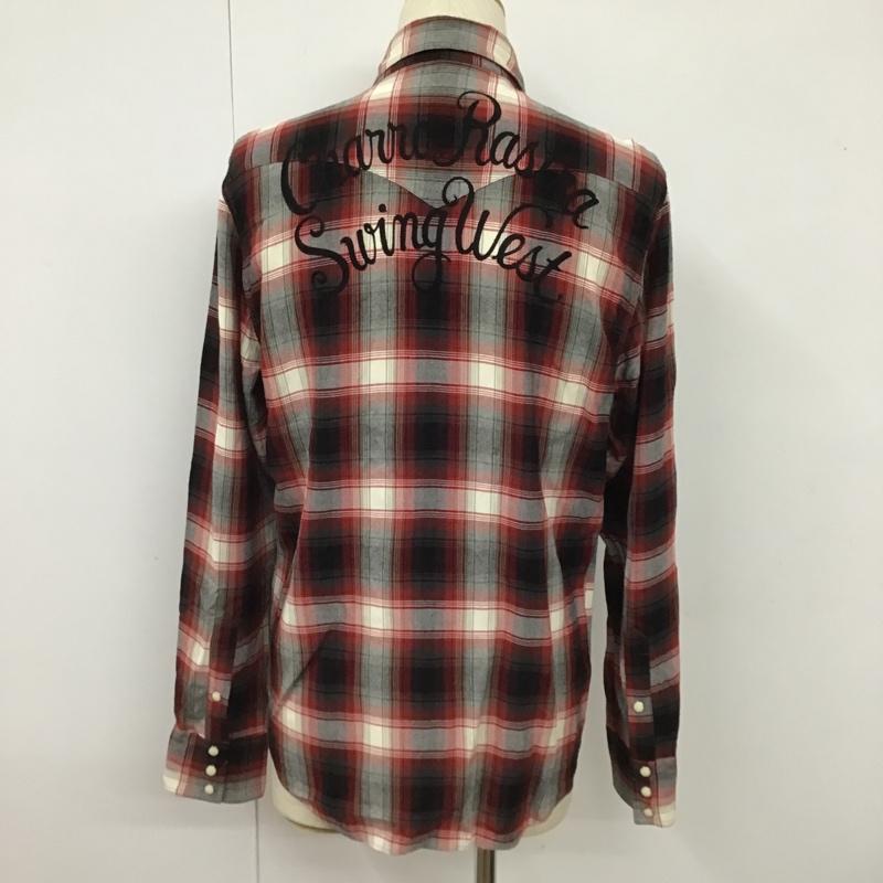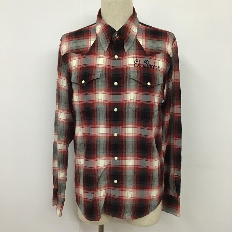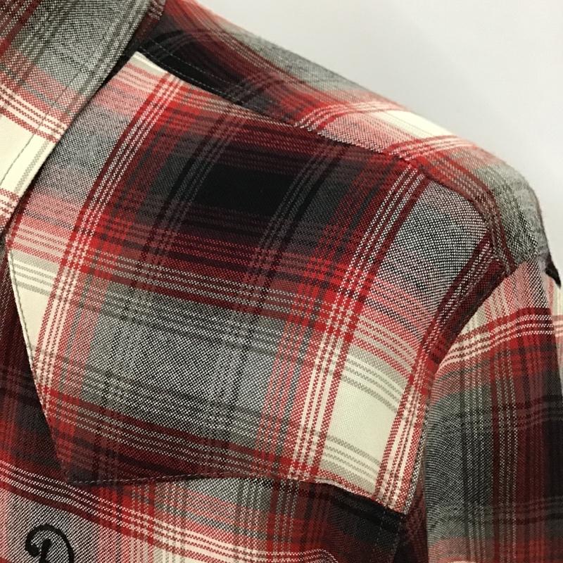 ワコマリア WACKO MARIA シャツ、ブラウス 長袖 刺繍 レーヨンウエスタンシャツ チェック M ロゴ、文字 白 / ホワイト / X 黒 / ブラック / X 赤 / レッド / メンズ USED 古着 中古 10101144
