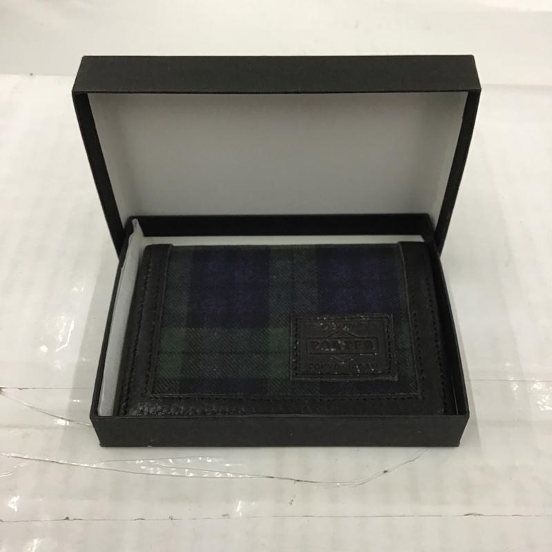ポーター PORTER カードケース 定期入れ 箱有 チェック ロゴ、文字 黒 / ブラック / X 緑 / グリーン / X 紺 / ネイビー / メンズ USED 古着 中古 10103146