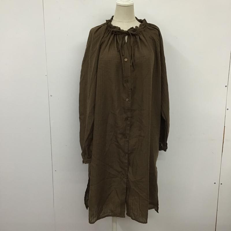 サマンサモスモスブルー Samansa Mos2 blue ワンピース ロングスカート KMC-1710622 ブラウスワンピース 長袖シャツワンピース ノーカラー ロングワンピース FREE チェック 茶 / ブラウン / レディース USED 古着 中古 10103529