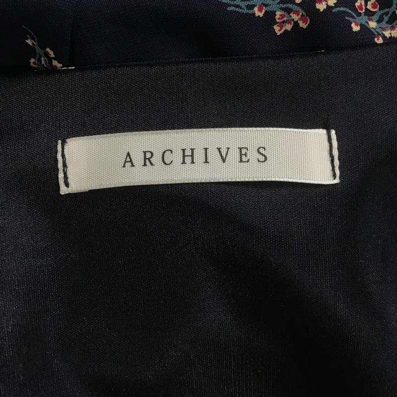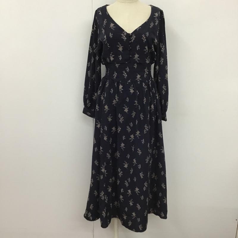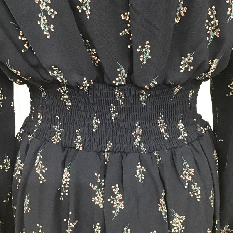 アルシーヴ archives ワンピース ロングスカート 長袖ワンピース ロングワンピース シャツワンピース ウエストゴム プリント X 花柄 紺 / ネイビー / レディース USED 古着 中古 10105164