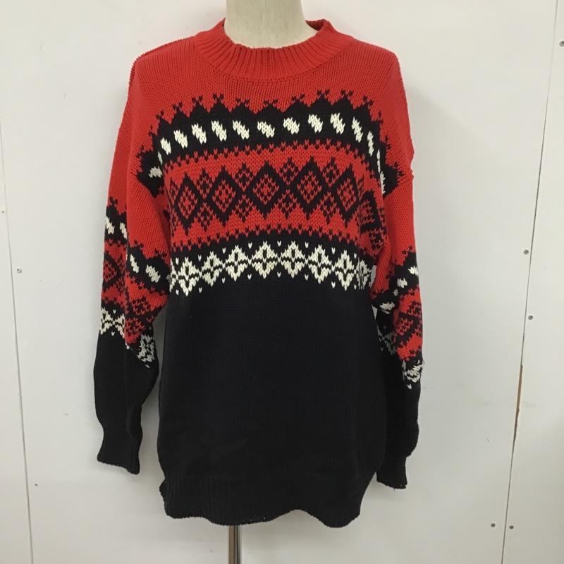 ギャップ GAP ニット、セーター 長袖 長袖ニット リブニット セーター クルーネックカットソー セーター M 総柄 白 / ホワイト / X 紺 / ネイビー / X 赤 / レッド / メンズ USED 古着 中古 10105426