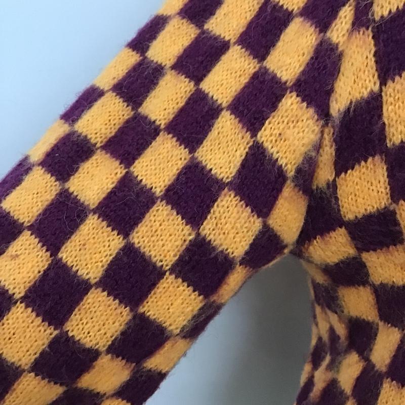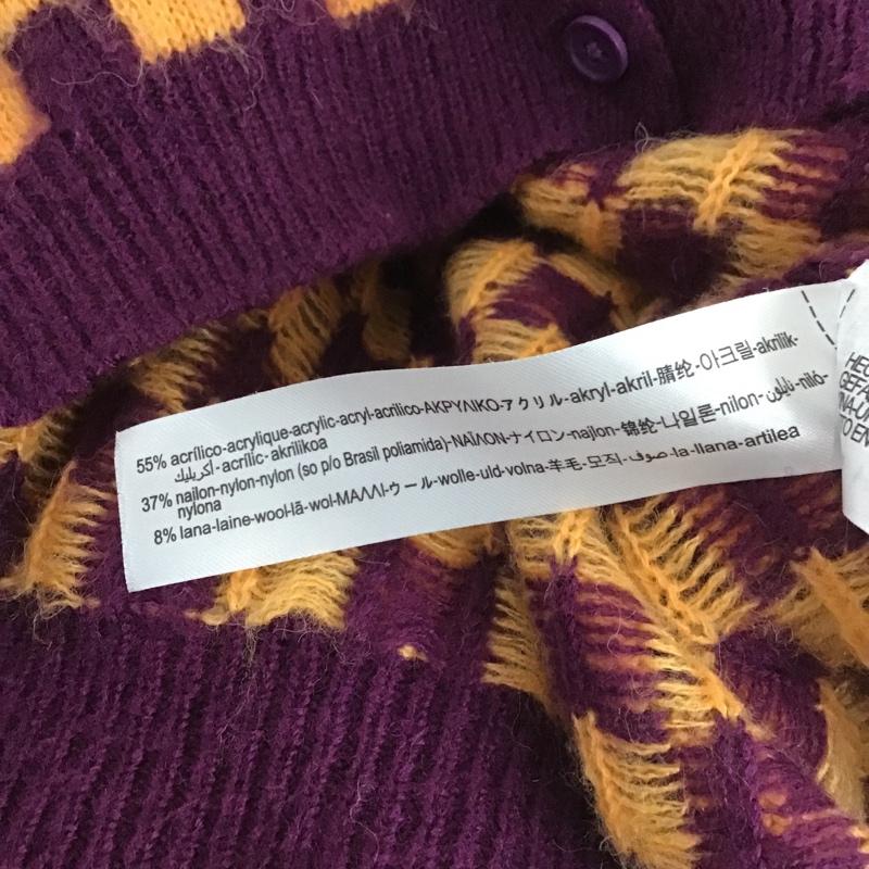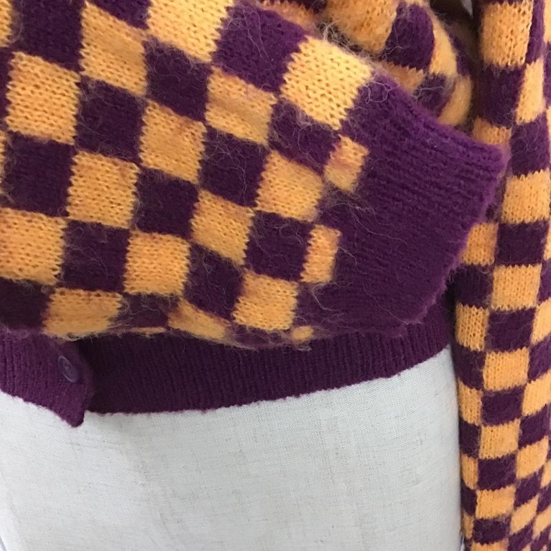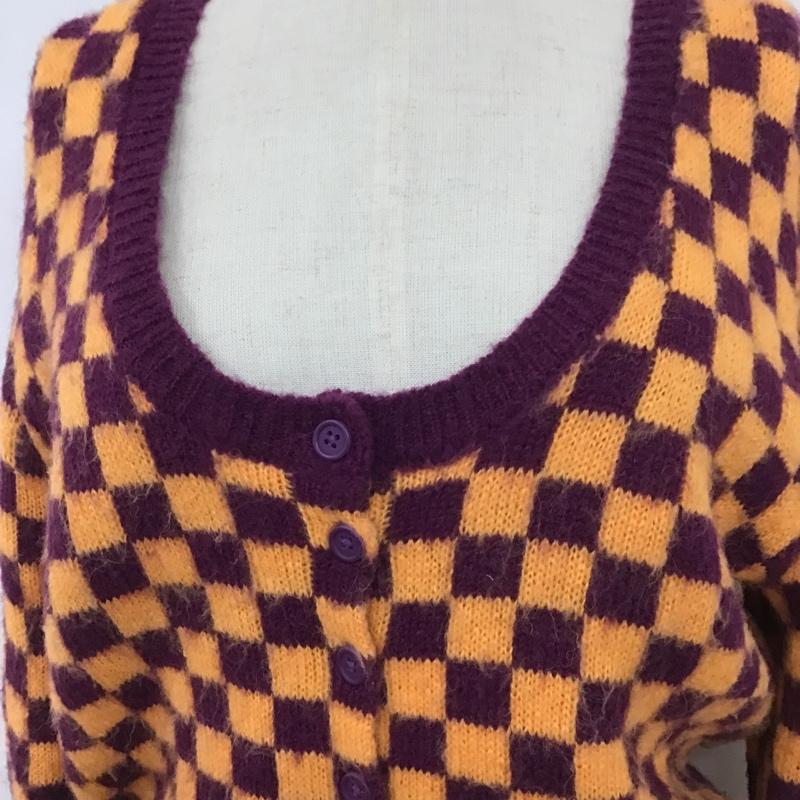 ザラ ZARA カーディガン 長袖 1957 001 050 ショート丈 Uネック M チェック 橙 / オレンジ / X 紫 / パープル / レディース USED 古着 中古 10105497