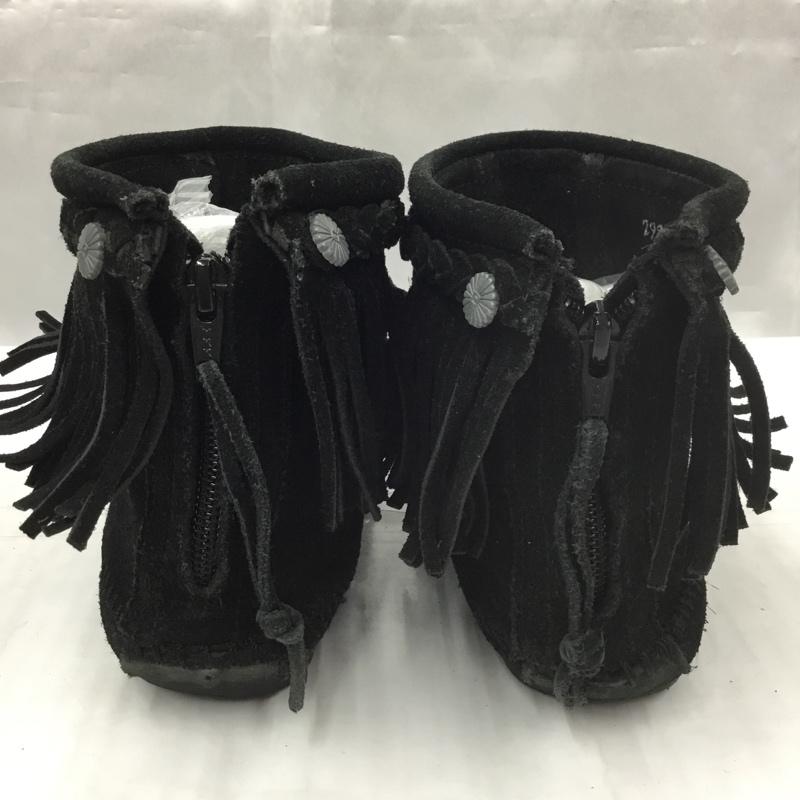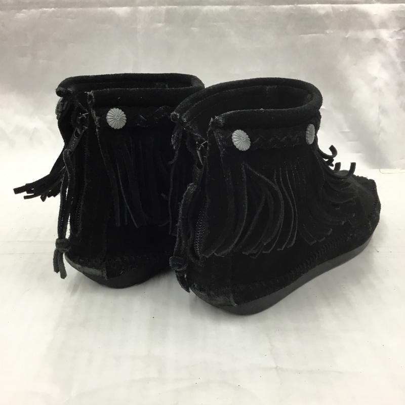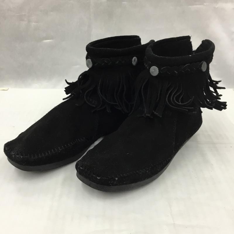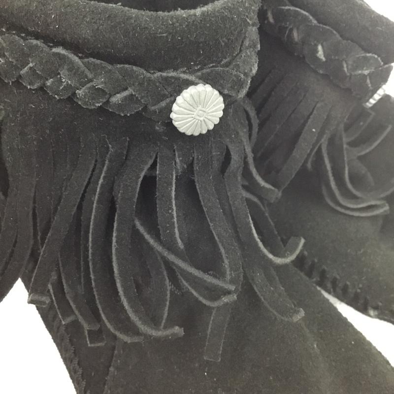 ミネトンカ Minnetonka ブーツ ショートブーツ 299 earth music&ecology コラボ フリンジ 1613107 無地 黒 / ブラック / レディース USED 古着 中古 10105966