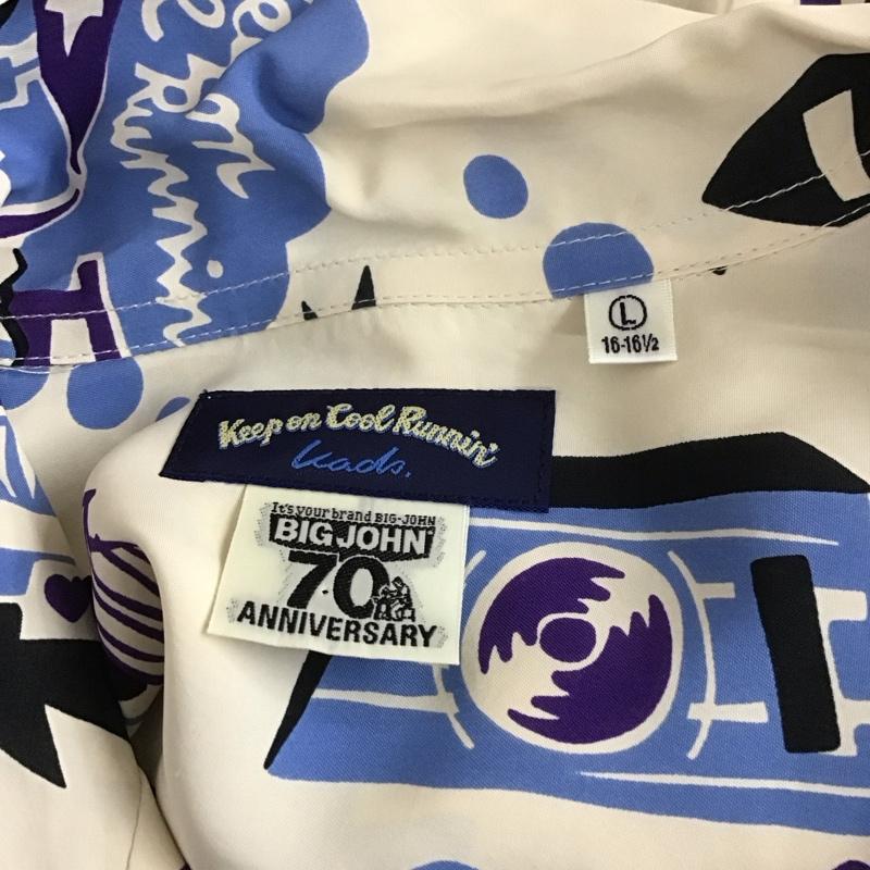 ビッグジョン Big John シャツ、ブラウス 半袖 MS02KADS 70周年 200枚限定 アロハシャツ ハワイアンシャツ 半袖シャツ L プリント ベージュ / ベージュ / メンズ USED 古着 中古 10106768