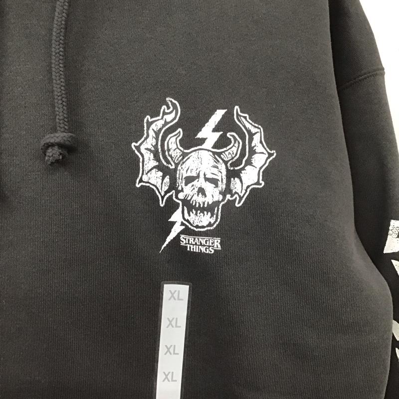 ジーユー GU パーカー 長袖 341-349292 ヘビーウェイトスウェットパーカー ストレンジャーシングス 長袖パーカー XL ロゴ、文字 黒 / ブラック / メンズ USED 古着 中古 10106993