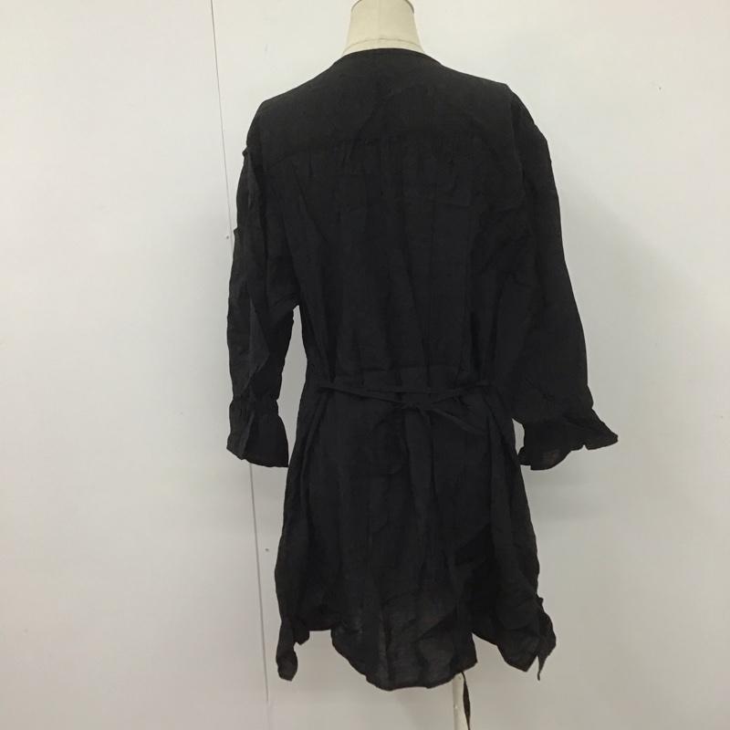 ローリーズファーム LOWRYS FARM シャツ、ブラウス 七分袖 LF621208AD レースフラップチュニック5S FREE 無地 黒 / ブラック / レディース USED 古着 中古 10107497