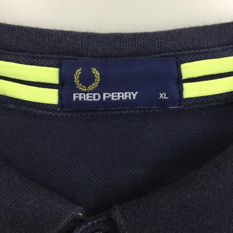 フレッドペリー FRED PERRY ポロシャツ 半袖 半袖ポロシャツ カラーシャツ 半袖カットソー XL ロゴ、文字 紺 / ネイビー / メンズ USED 古着 中古 10109004