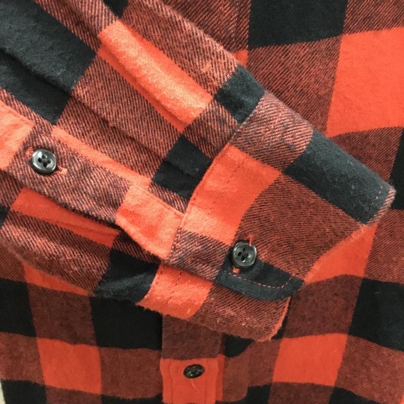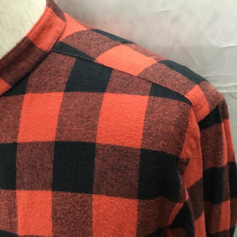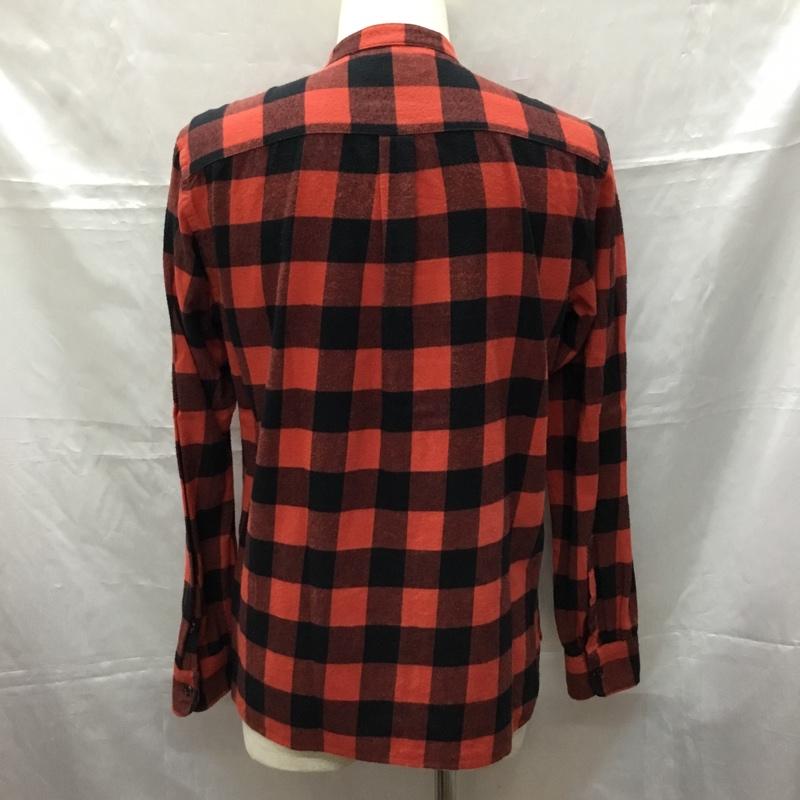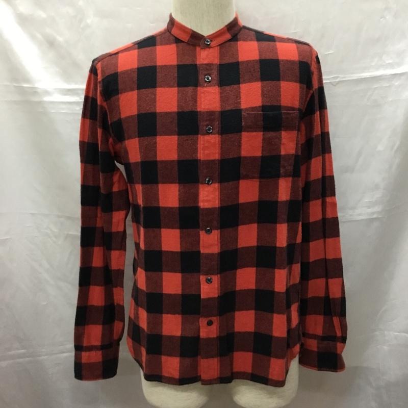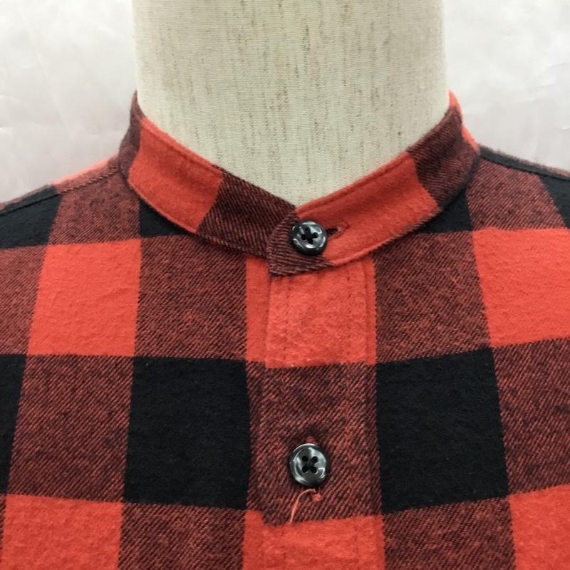 グローバルワーク GLOBAL WORK シャツ、ブラウス 長袖 GN220003SB ノーカラー バンドカラー M チェック 赤 / レッド / X 黒 / ブラック / メンズ USED 古着 中古 10109247